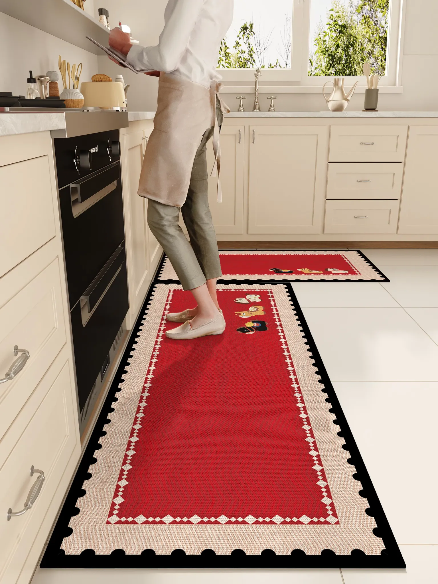 2026年の新作!干支「馬」にちなんだキッチンマット、防滑・防油・お手入れ簡単!華やかな赤色で玄関やキッチンを彩る、祝いの気持ちを込めたマットです。