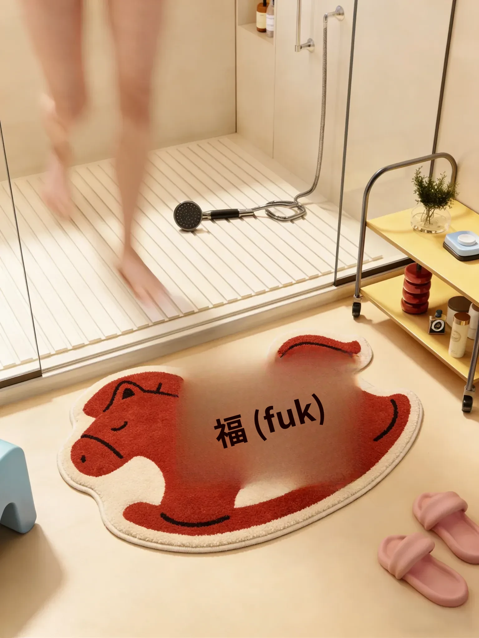 馬年のバスルームマット - 冬にぴったりの小さな赤い馬のデザイン!吸水性抜群のフワフワなトイレ用足元マットで、玄関に華やかさをプラスします。寒い季節も心地よくおしゃれに!