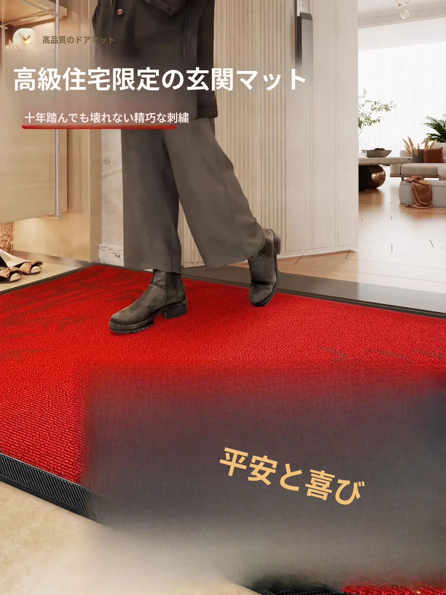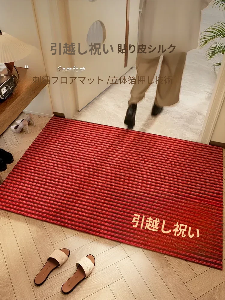 新居祝いの赤い玄関マット - 引越しを祝う華やかなデザインで、安心して出入りできる!新しい生活のスタートを彩る、心温まるアイテムです。