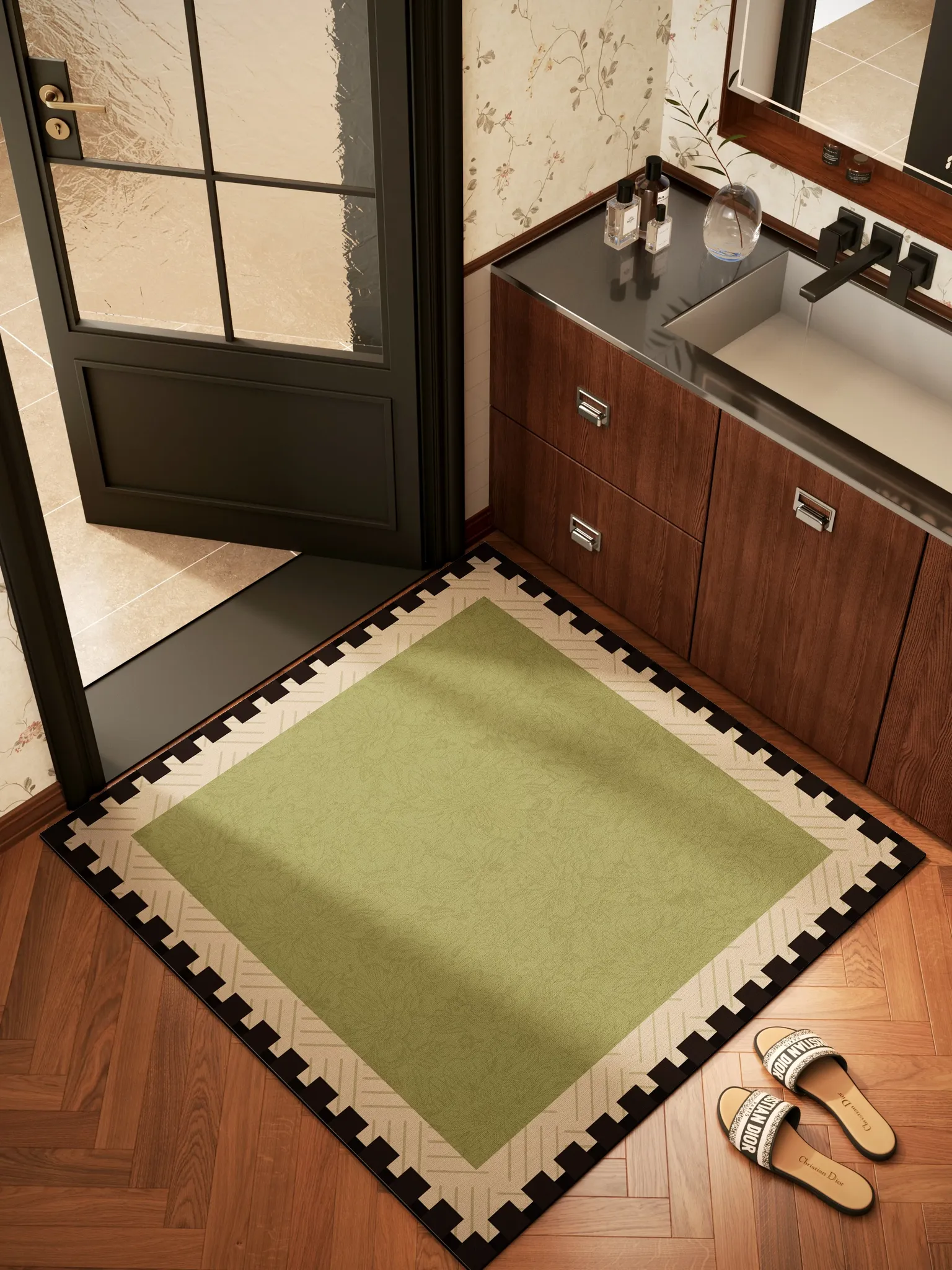 新中式玄関マット2026年新作!宋氏美学デザインのグリーン高級感溢れる室内禅マット、心地よい足元を演出します。