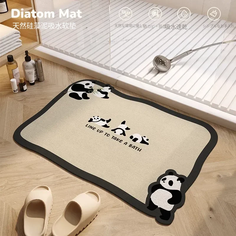 ユニークな形状のバスルーム専用シリカゲル吸水マット|滑り止め付きで安全|シャワールームやトイレに最適な可愛いパンダデザインのバスマット!快適な入浴体験をお楽しみください。