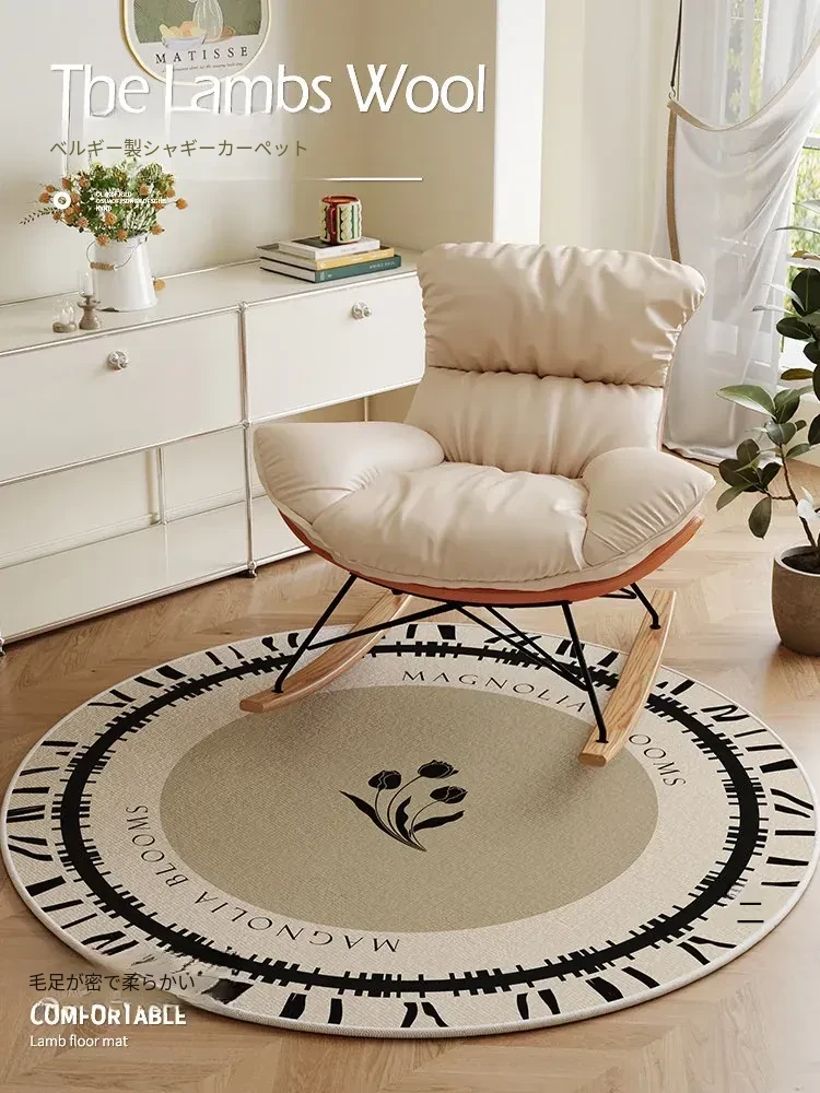 リラックス空間を演出!洗濯不要の丸型ラグ、揺り椅子やソファにぴったり。パソコンチェアの下にも最適なクッション性で、快適な座り心地を実現。おしゃれで機能的なインテリアをお楽しみください!