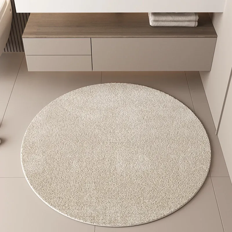 侘寂風デザインのバスルームマット - 洗濯可能で滑り止め機能付き、シャワールームの入り口に最適な吸水性ラウンドカーペット!おしゃれで快適な空間を演出します。