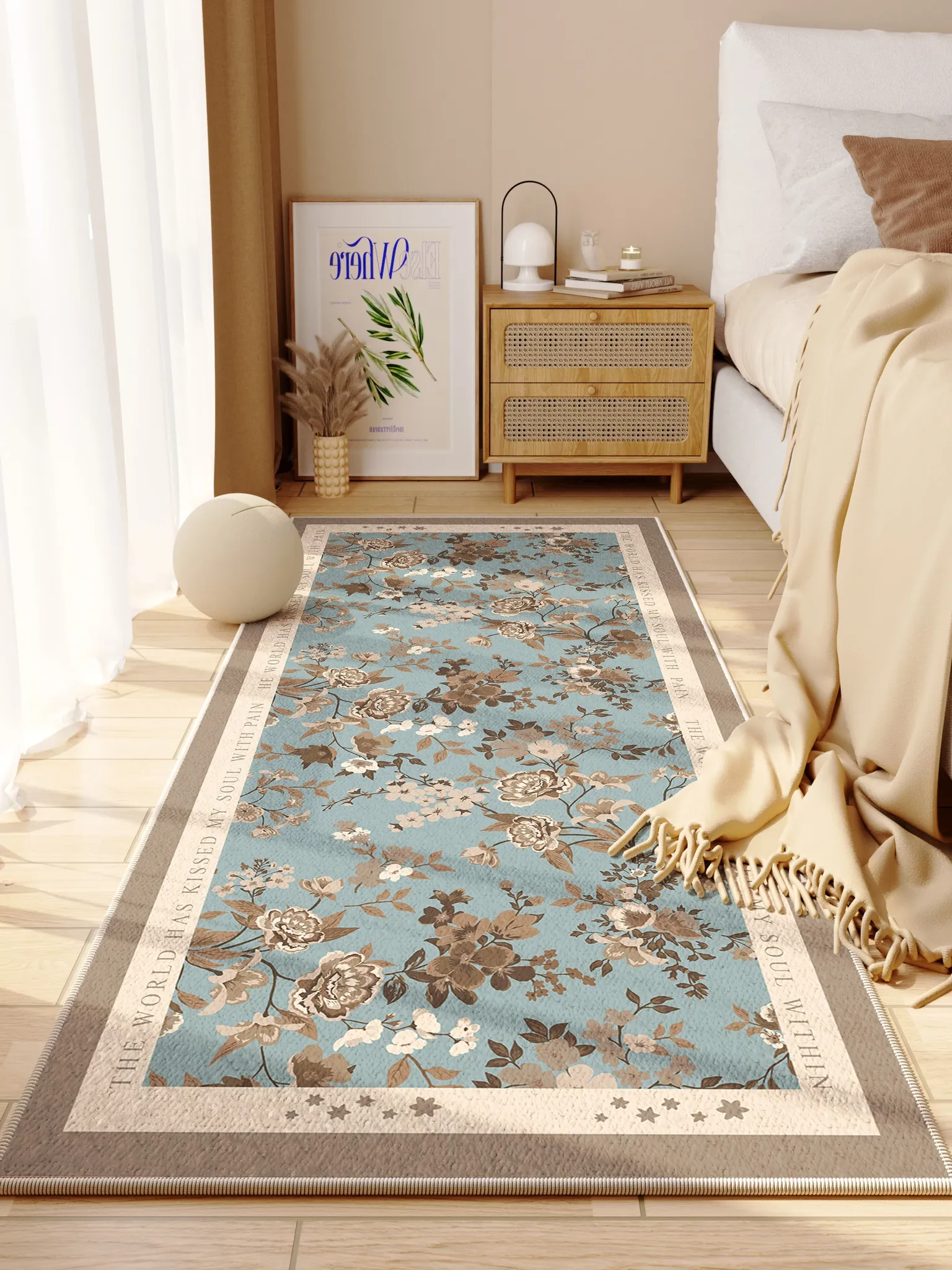 防水・防汚!新中式復古デザインのベッドサイドラグ。主寝室やリビングにぴったりな長方形カーペット。ソファやテーブルの下に置いて優雅な空間を演出。快適さと美しさを両立させた一品です!