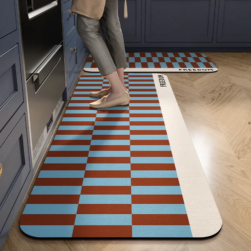洗える!お手入れ簡単なシリカゲル製キッチンマット。中古風デザインで滑り止め・吸水性抜群!汚れに強い、安心して使えるフロアマット。安全で快適なキッチン空間を演出します!