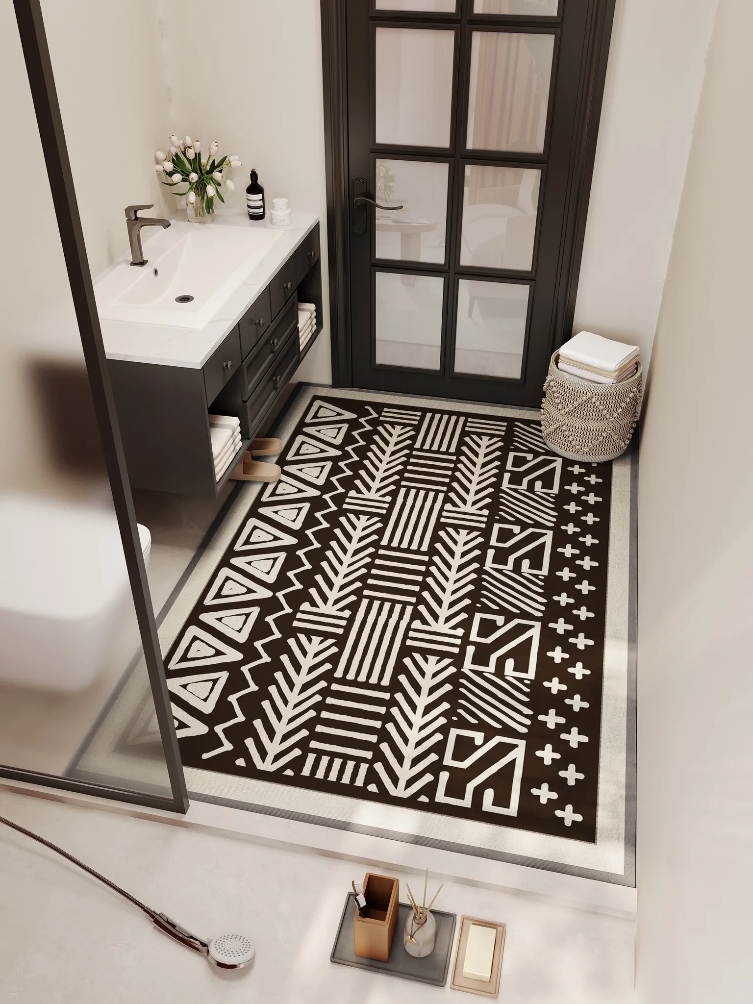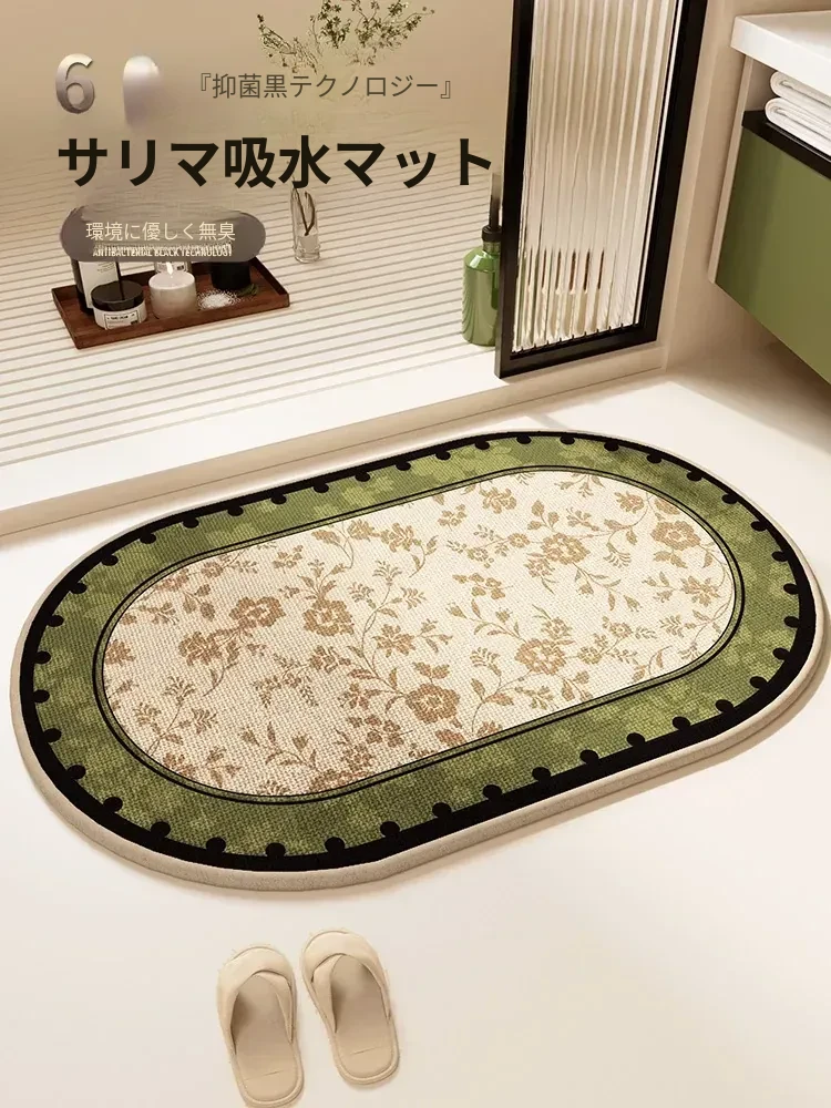 バスルーム用吸水マット|滑り止め&速乾|家庭用トイレ・洗面所専用のふわふわ足元マット!快適さと安全性を両立したおしゃれなデザインで、毎日の生活をもっと楽しく!