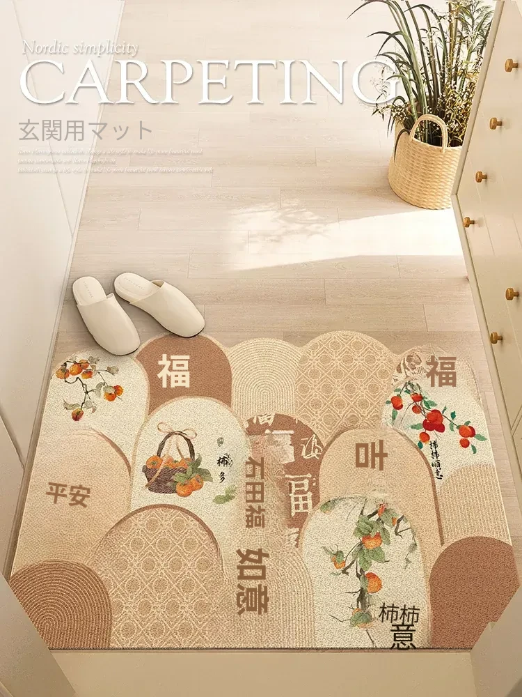 新中式スタイルの玄関マット - おしゃれなドアマット、カット可能で便利!耐汚れ&洗濯不要のPVC素材で、お手入れ簡単。あなたの家の入り口を明るく、快適に演出します!