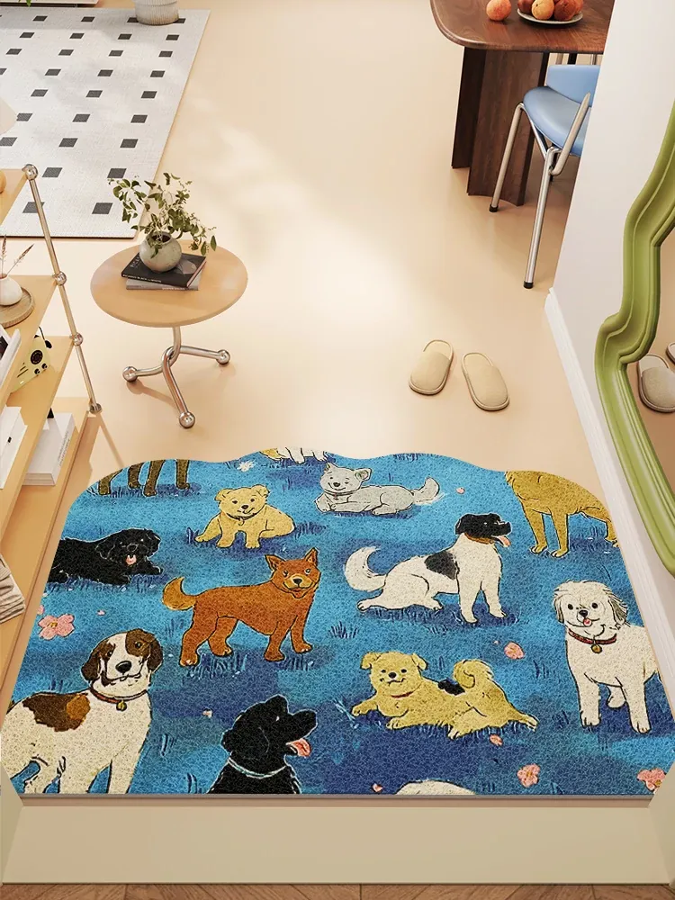 かわいいカートゥーン犬の滑り止めマット!玄関専用の土よけラグ、ドーパミンを感じるブルーのデザインで、可愛らしさと実用性を兼ね備えた一品。あなたの家にぴったりのアイテムです!