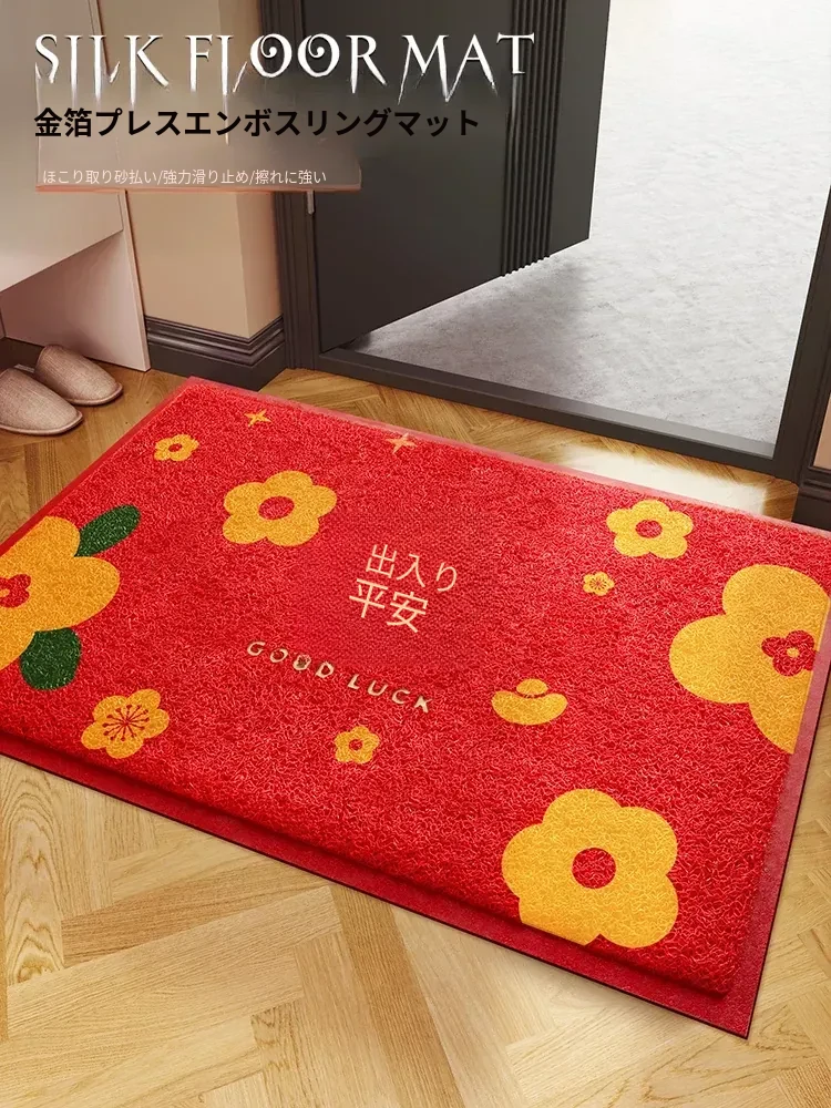 平安喜楽の新年を祝う!赤い家庭用玄関マット - おしゃれで耐汚れ、広い玄関にもぴったりのドアマット!新年の訪れを感じるアイテムで、幸せを呼び込もう!