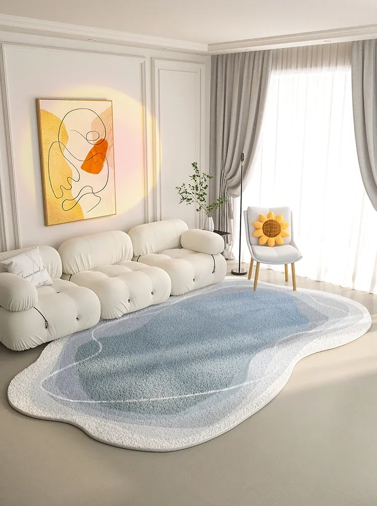 不規則デザインのリビングカーペット | おしゃれな雰囲気を演出する厚手のラグ | 書斎や寝室にもぴったり | 高級感あふれる耐汚れ仕様 | テーブルマットとしても最適!