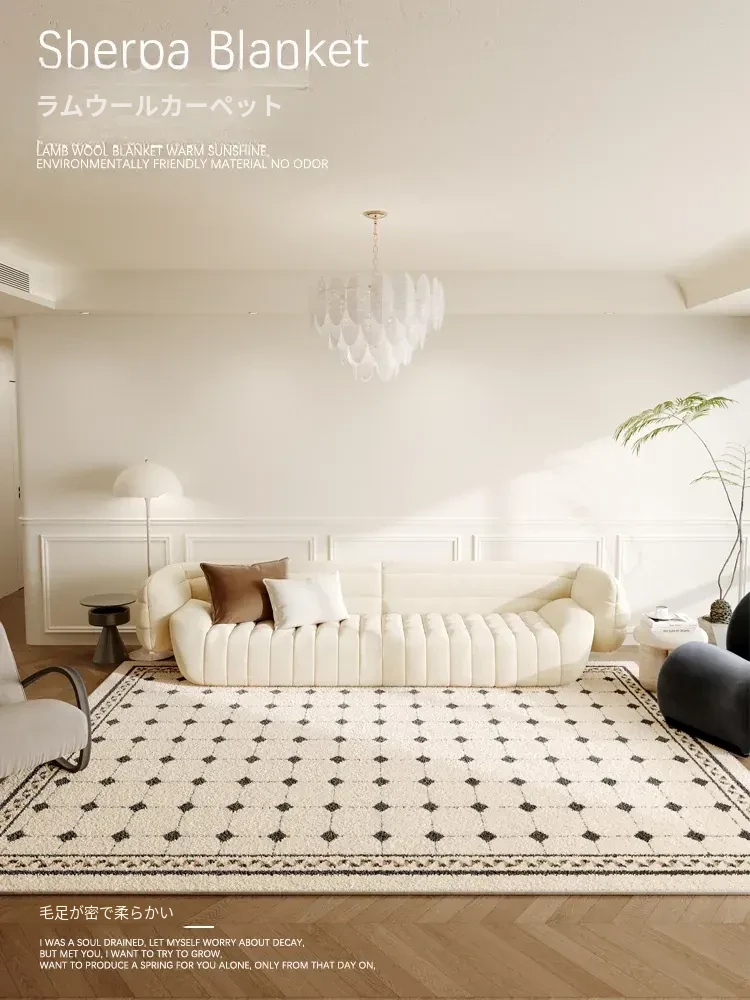 クリーム風リビングルームラグ フランス式ラグジュアリー感あふれるチェッカーパターン 家庭用北欧トレンド 中古風ブラックホワイトマット