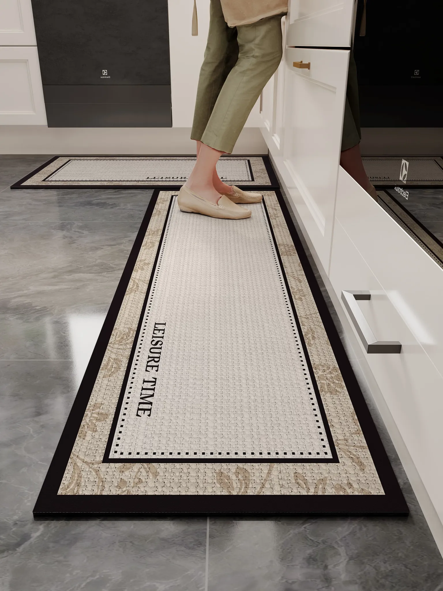 キッチン専用の洗える滑り止めマット!油を防ぎ、強力な吸水性と吸油性を兼ね備えたシリカゲル製の地毯。おしゃれで実用的な玄関マットで、清潔なキッチンを保ちましょう!