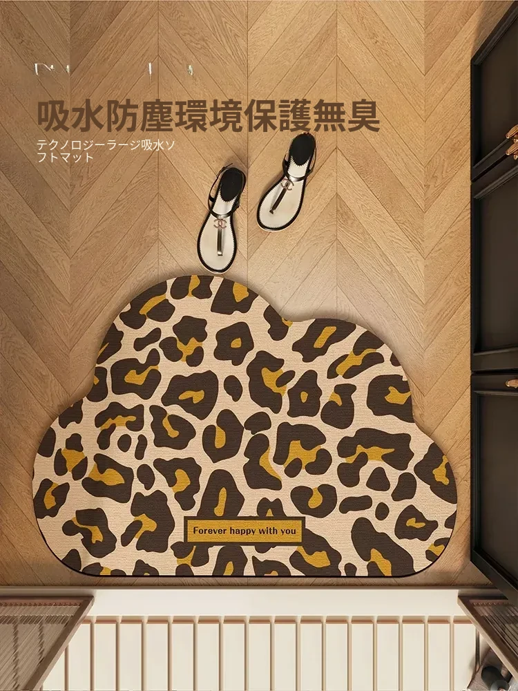 雲の形のバスルームマット|吸水性抜群のアメリカンレオパード柄|トイレや玄関にぴったりな速乾マット!シリカゲル素材でいつでも清潔に保てます!