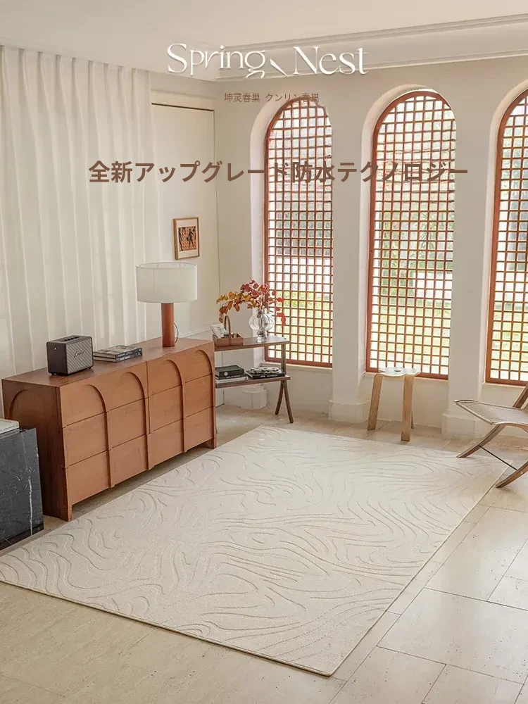 2024年新作!高級感漂うリビングカーペット - ソファにぴったり、簡単お手入れで洗濯不要!防水・防汚機能付きの魅力的な寝室用カーペットです。