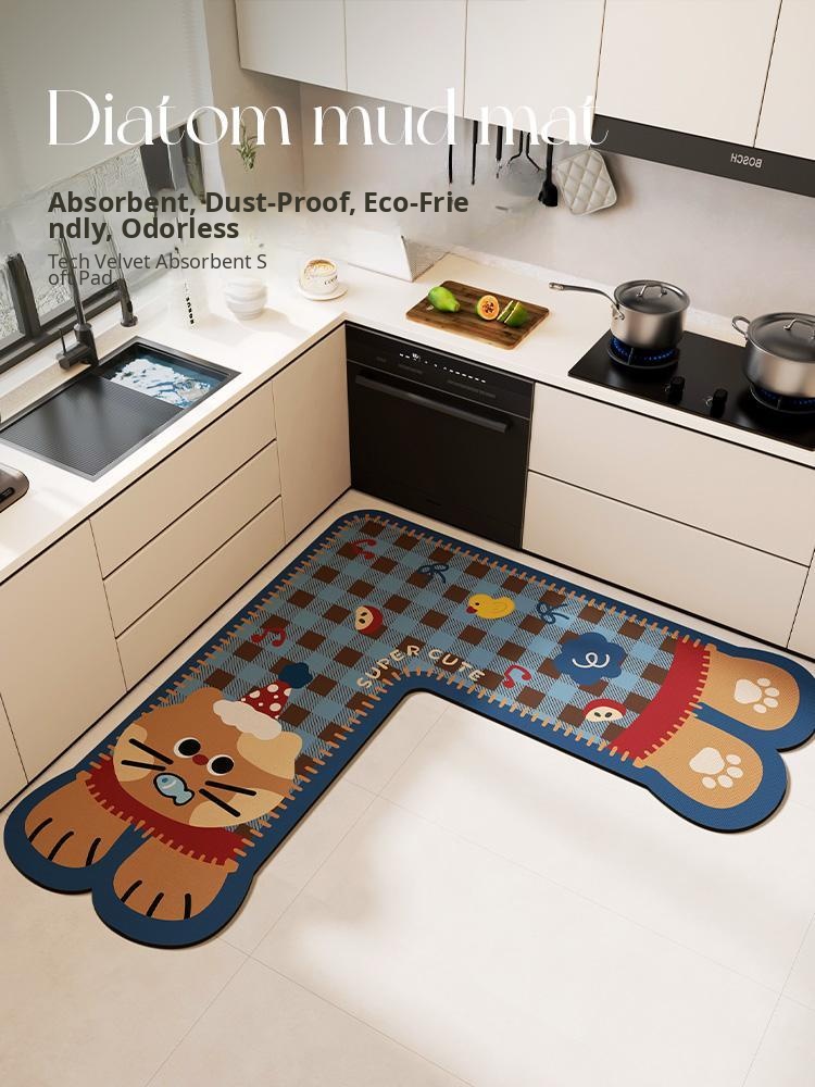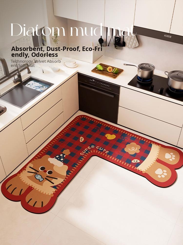 Cute Cartoon Kitchen Mat - Non-Slip, Oil-Resistant, Washable, and Absorbent Diatom Mud Rug - Perfect for Keeping Your Floors Clean and Stylish!