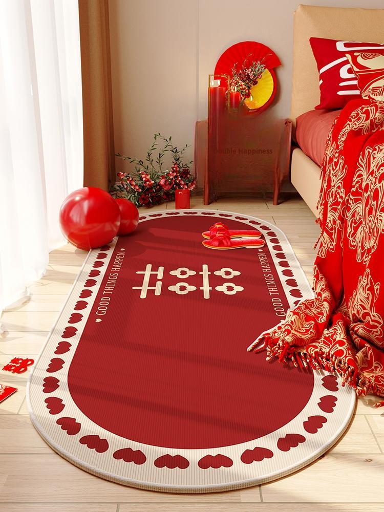 Wedding Bedroom Carpet - Festive Red "Double Happiness" Mat for Newlyweds, Perfect for Creating a Joyful Atmosphere in Your Main Bedroom. Ideal Wedding Decor Foot Mat!