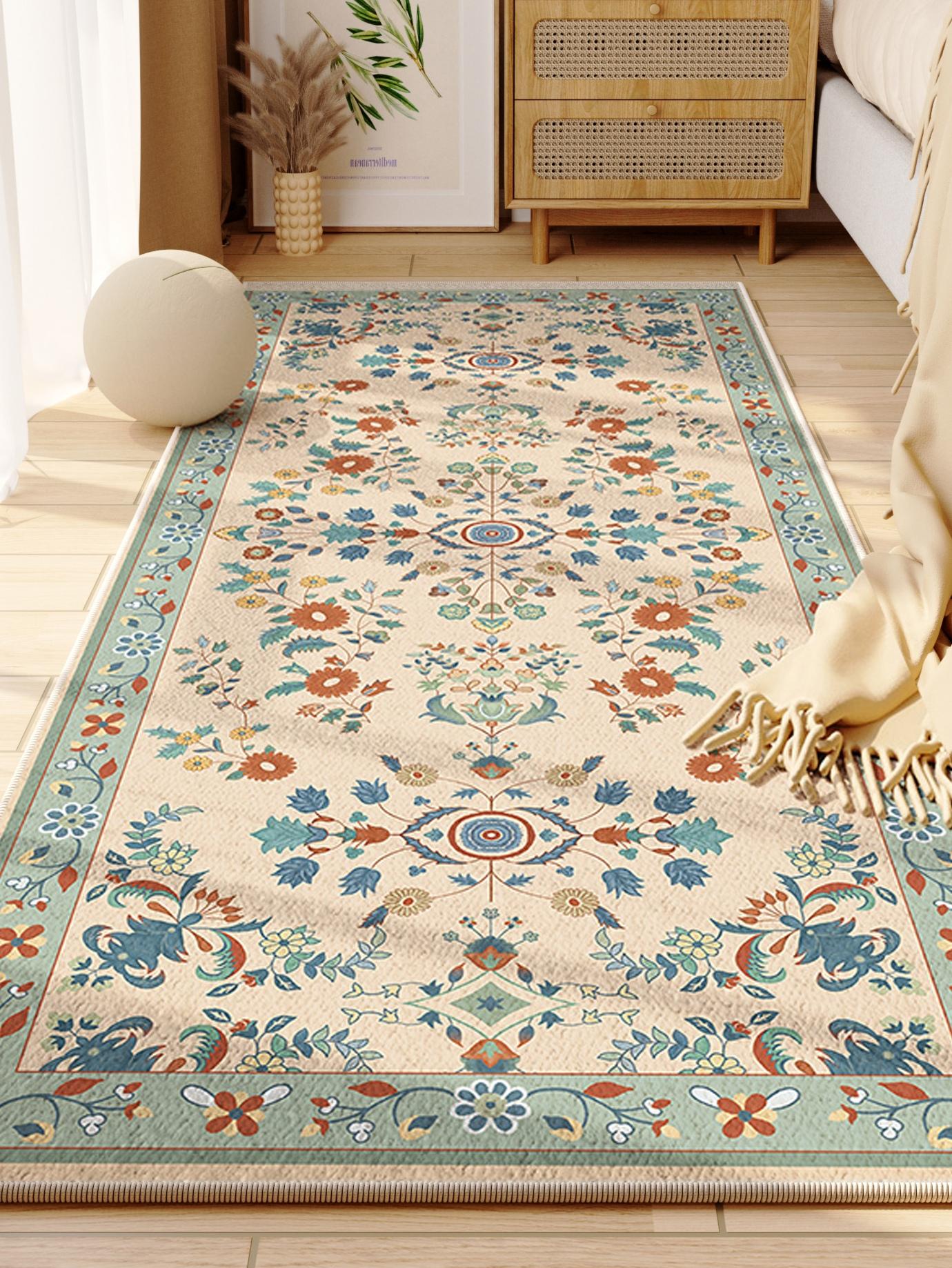 High-End American Style Bedroom Area Rug – Luxurious Living Room Carpet, Long Washable Runner Mat for Bedroom and Living Spaces, Perfect for Bedside Comfort