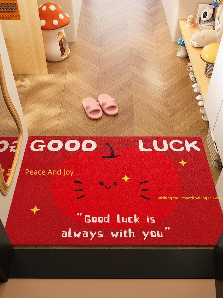 Festive Entry Door Mat - Creative Cute Apple Design, Red Chenille Welcome Carpet, Perfect for Front Door & Entryway, Easy to Clean Foot Mat