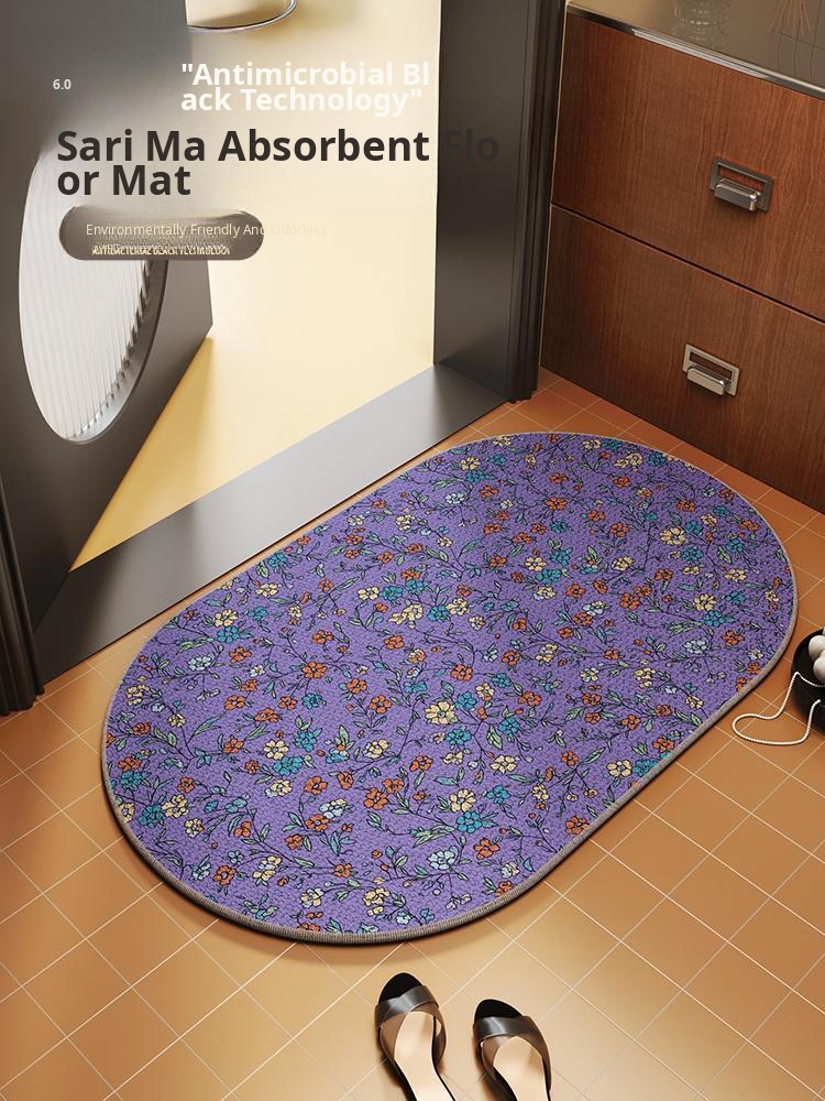 American-style Purple Absorbent Bath Mat - Oval Non-slip Bathroom Rug for Shower - Diatomite Carpet for Ultimate Comfort and Safety