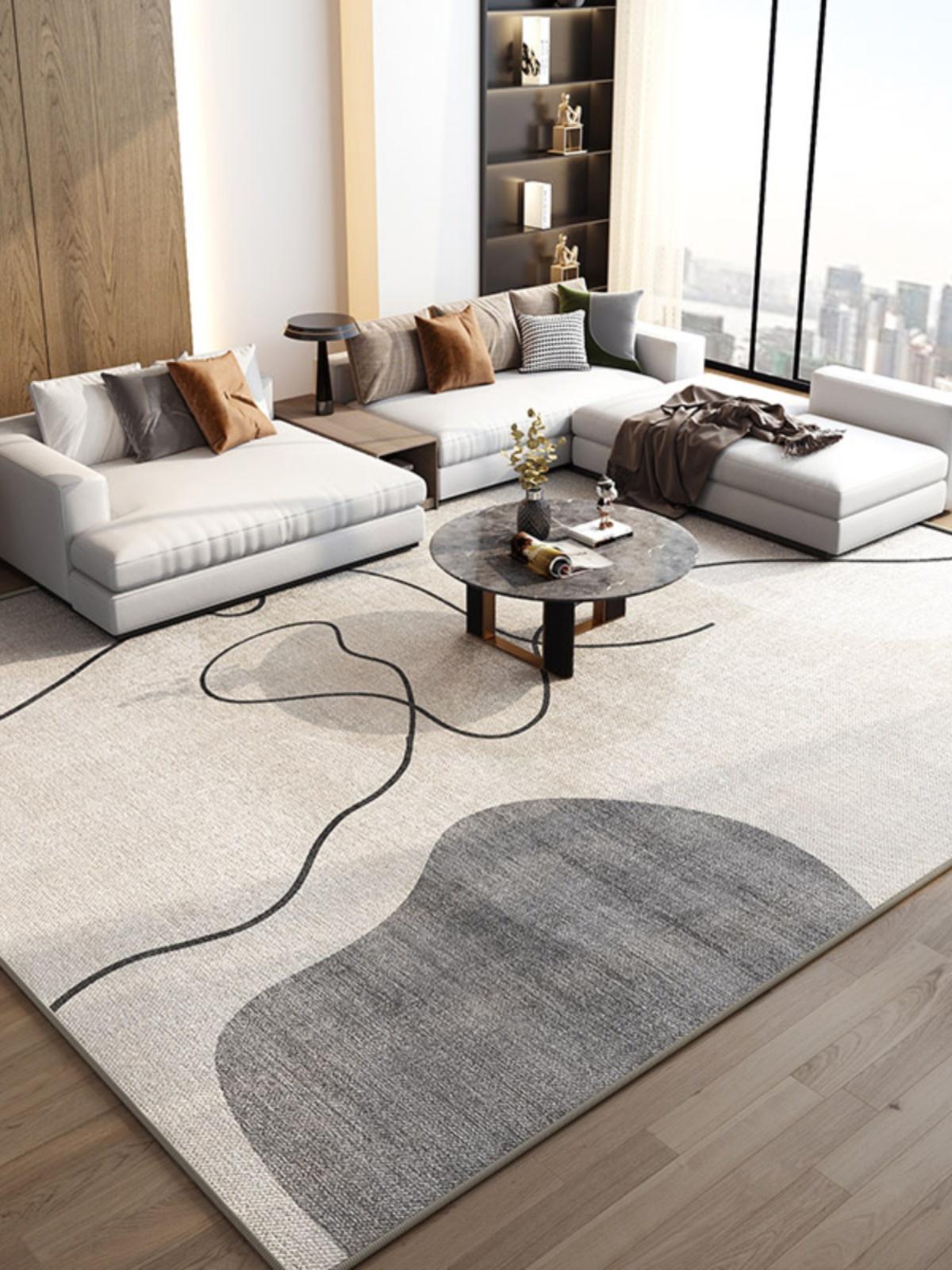 Luxurious Modern Living Room Carpet - Easy-Clean Short-Pile Area Rug for Sofa and Coffee Table, Oversized Bedroom Mat, Stain-Resistant Design