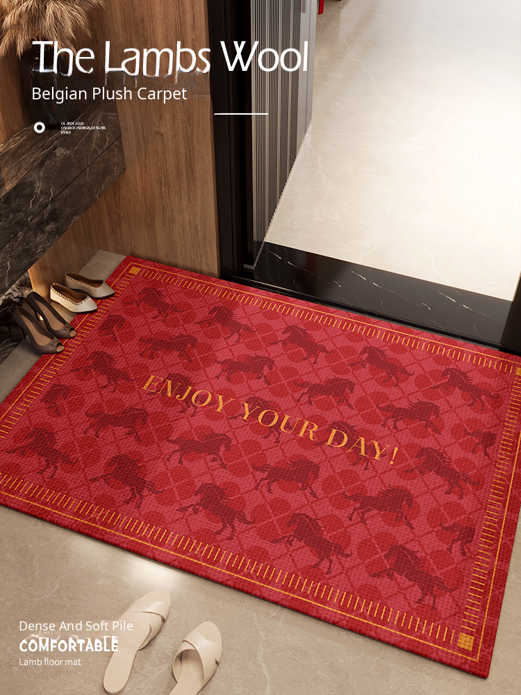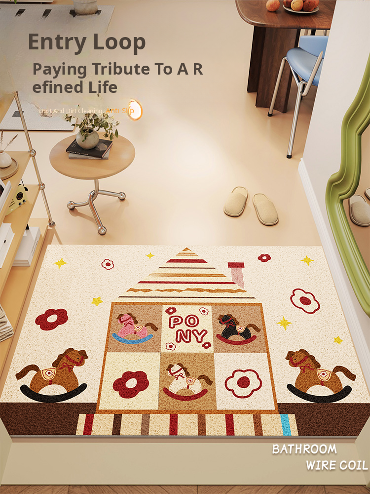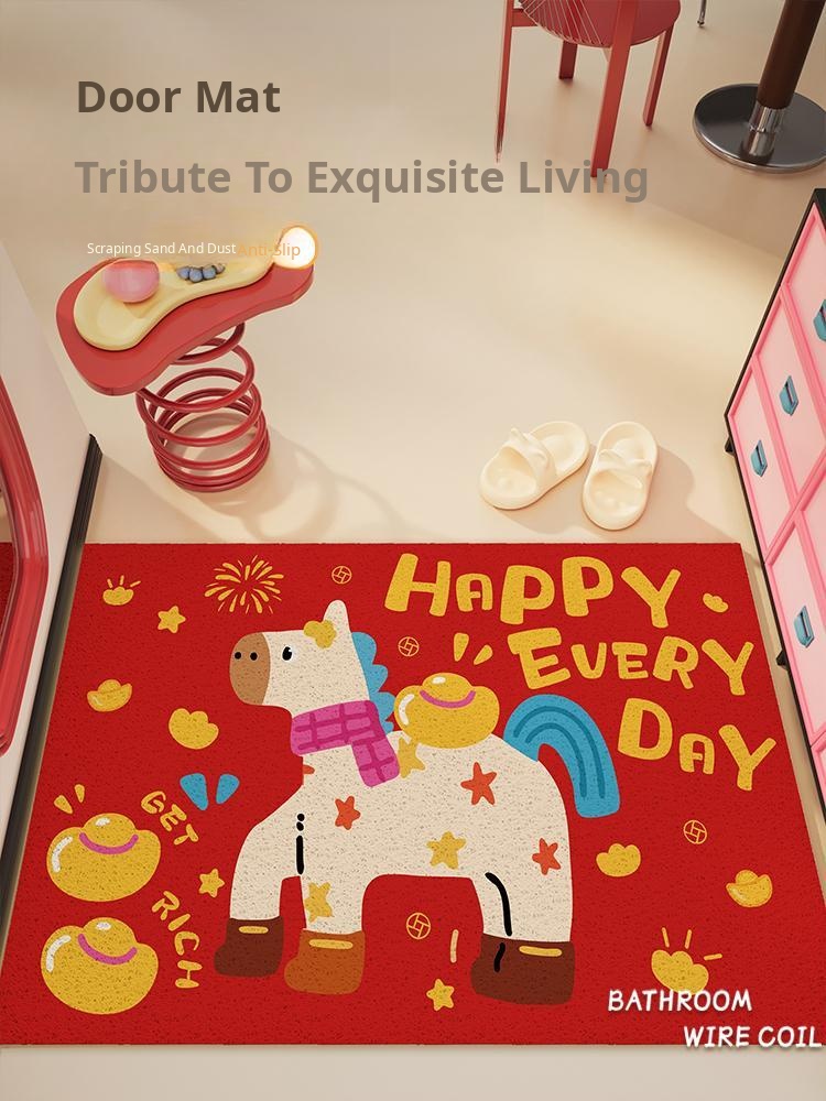 Korean INS Style Entryway Mat - 2026 New PVC Doormat for Year of the Horse, Indoor Dustproof Rug for Your Home Entrance