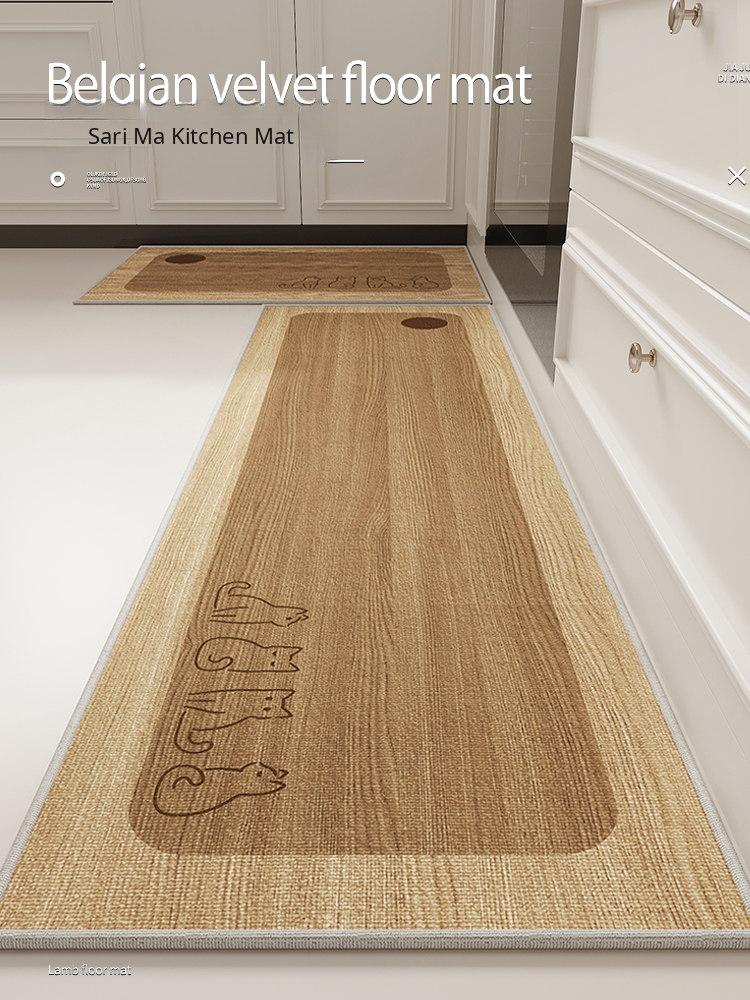 Natural Wood Style Kitchen Mat - Non-Slip, Oil-Resistant Long Entry Rug, Thick Weave, Easy Care, Absorbent Carpet for Your Home