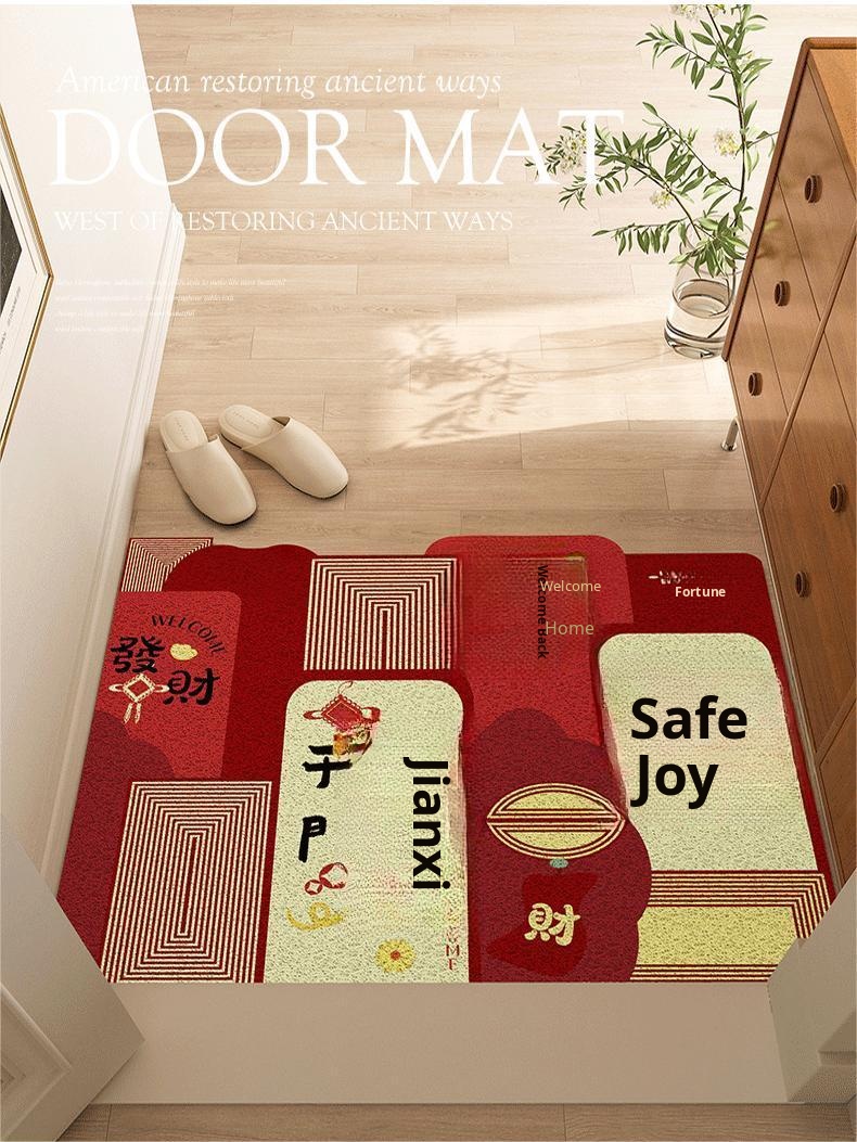 "Safe Entry Embroidered Door Mat - Festive Red Welcome Rug for Entryway, Non-Slip Doormat to Keep Dirt at Bay, Perfect for Home Decoration"