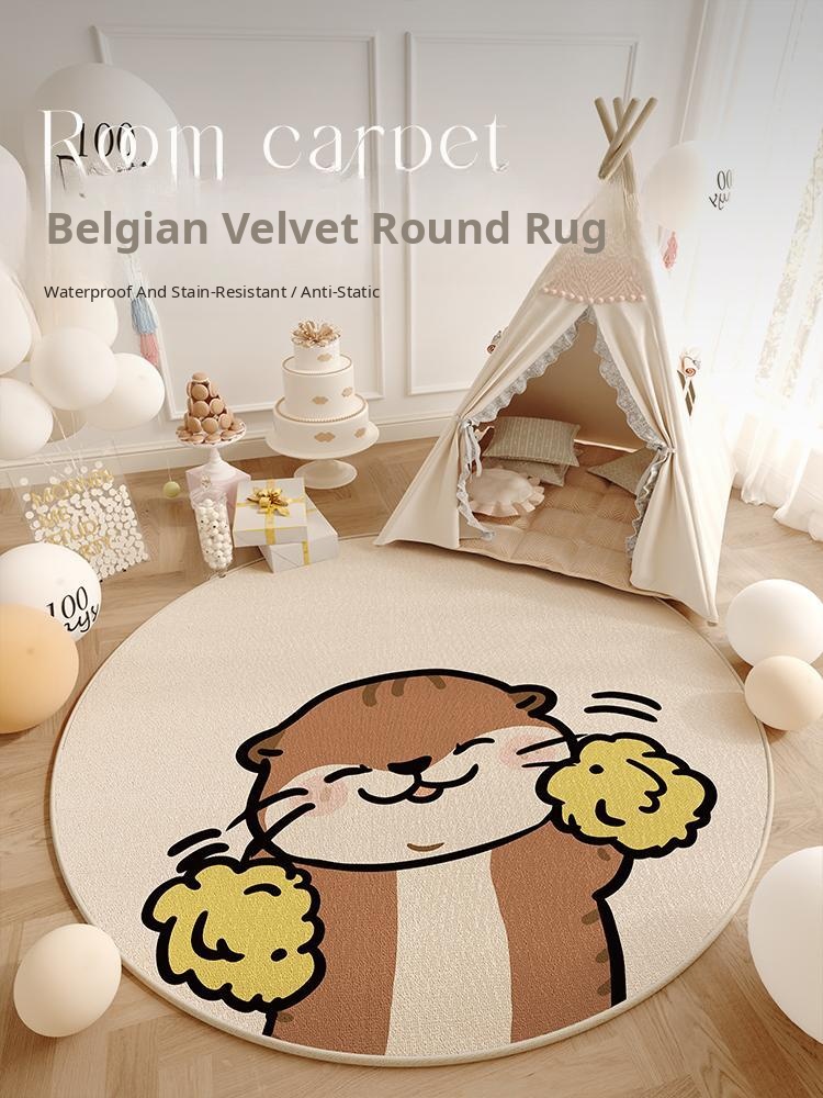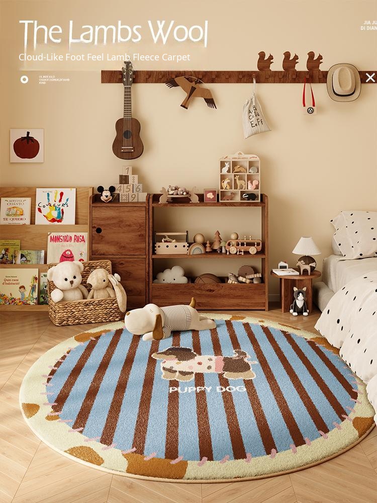 Cozy Round Plush Area Rug for Kids' Room - Non-Slip, Low-Maintenance Bedside Mat for Winter, Soft Thick Floor Cushion for Warm Feet in Living Room