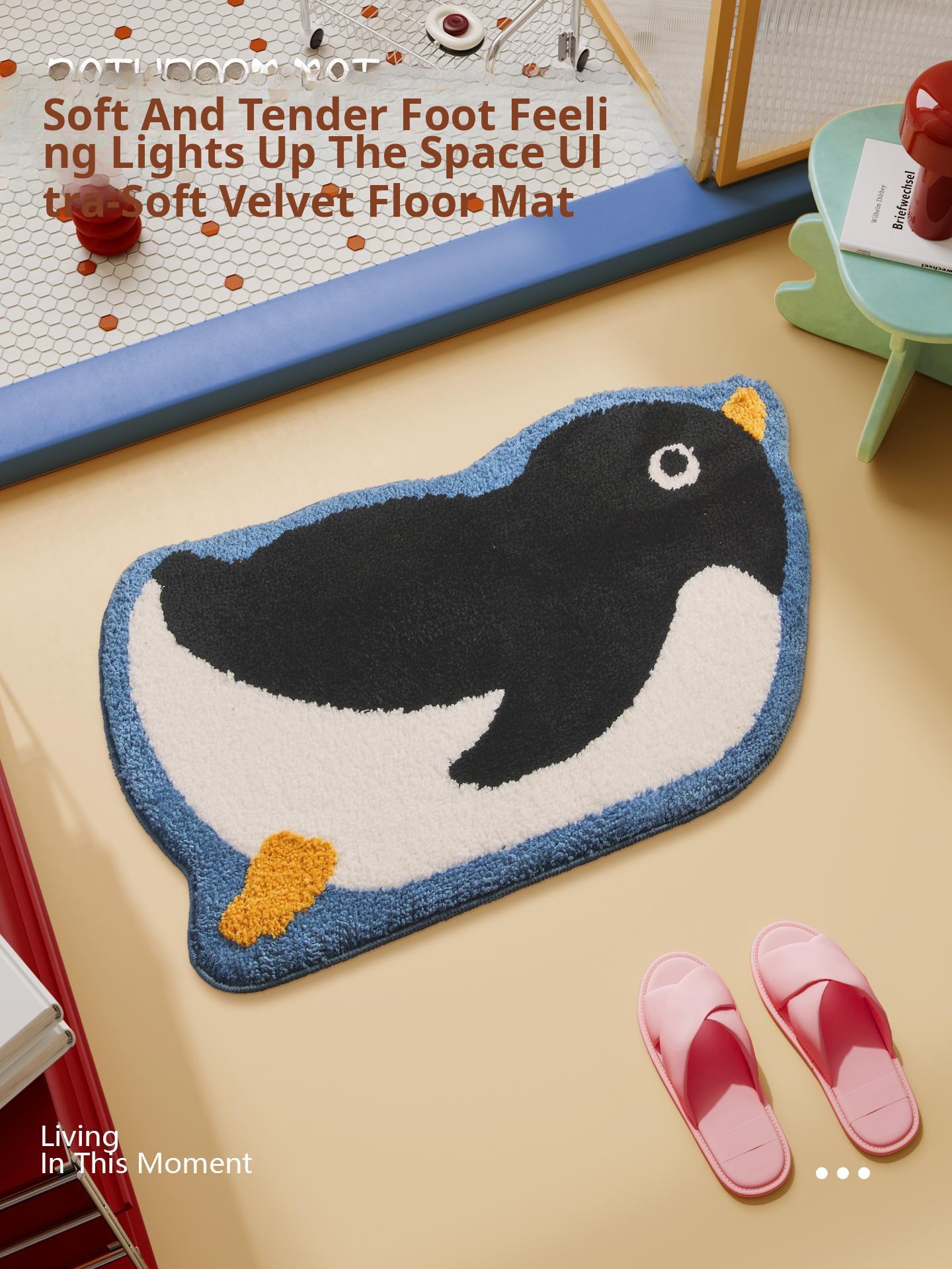 Winter Plush Penguin Bath Mat - Absorbent, Non-Slip Carpet for Bathroom, Bedroom & Toilet - Soft Flocked Foot Mat for Cozy Comfort