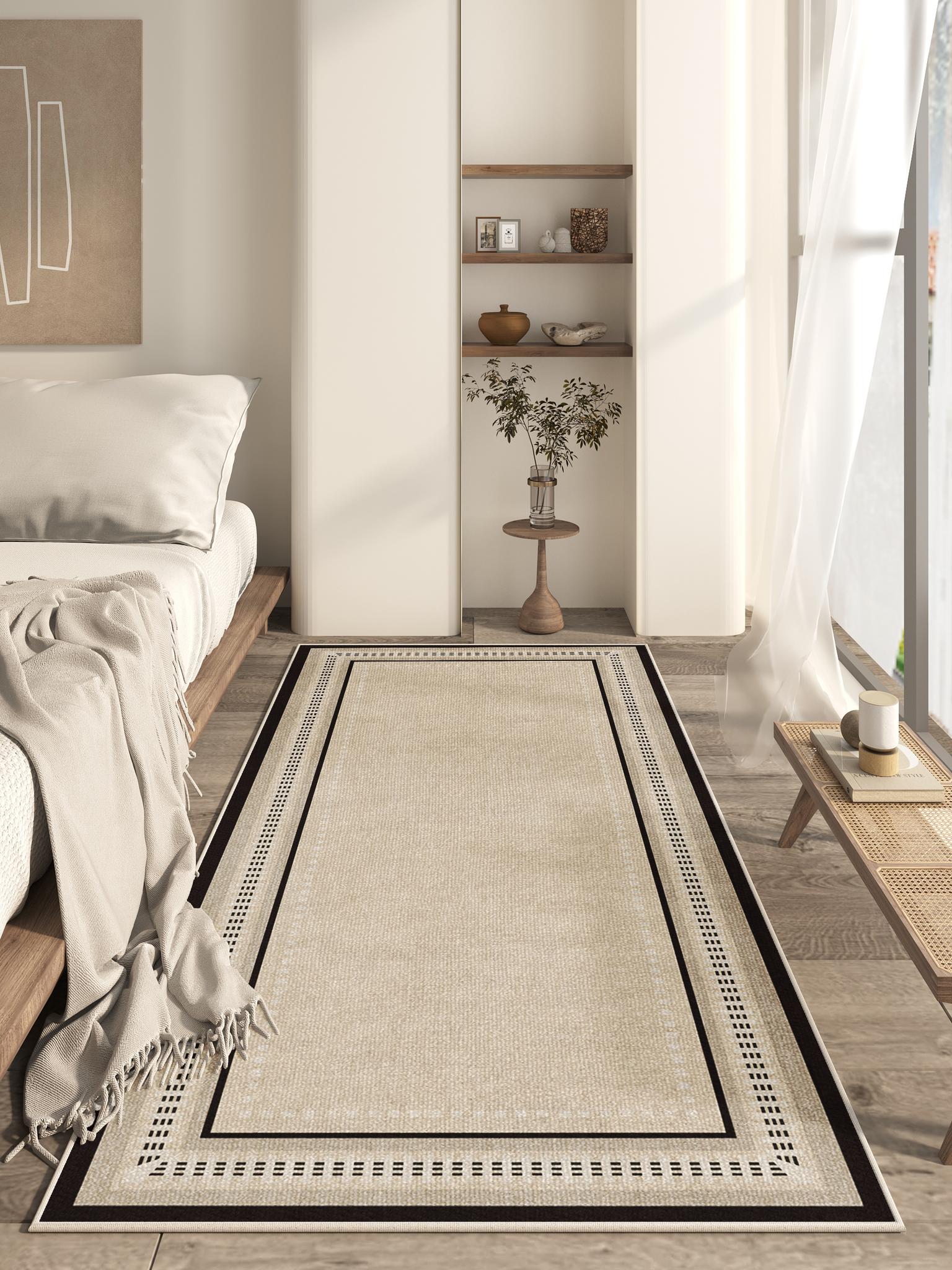 Luxurious French Cream-Style Non-Slip Bedroom Area Rug for Master Bedroom & Living Room - Elegant Long Carpet for Bedside & Entryway