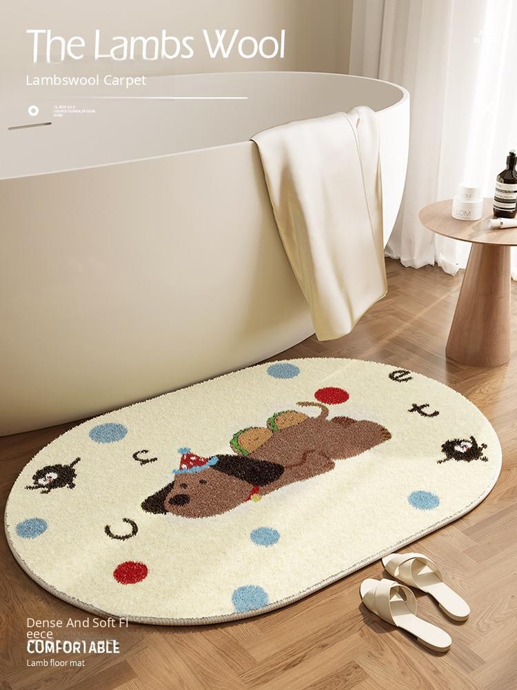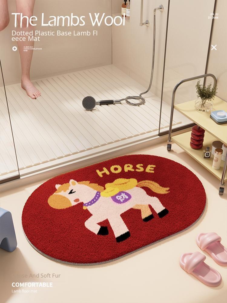 Oval Bathroom Mat - Quick-Dry, Absorbent Carpet for Winter with Plush Cushioning - Non-Slip Door Mat for Toilet Entrance, Perfect for Year of the Horse!