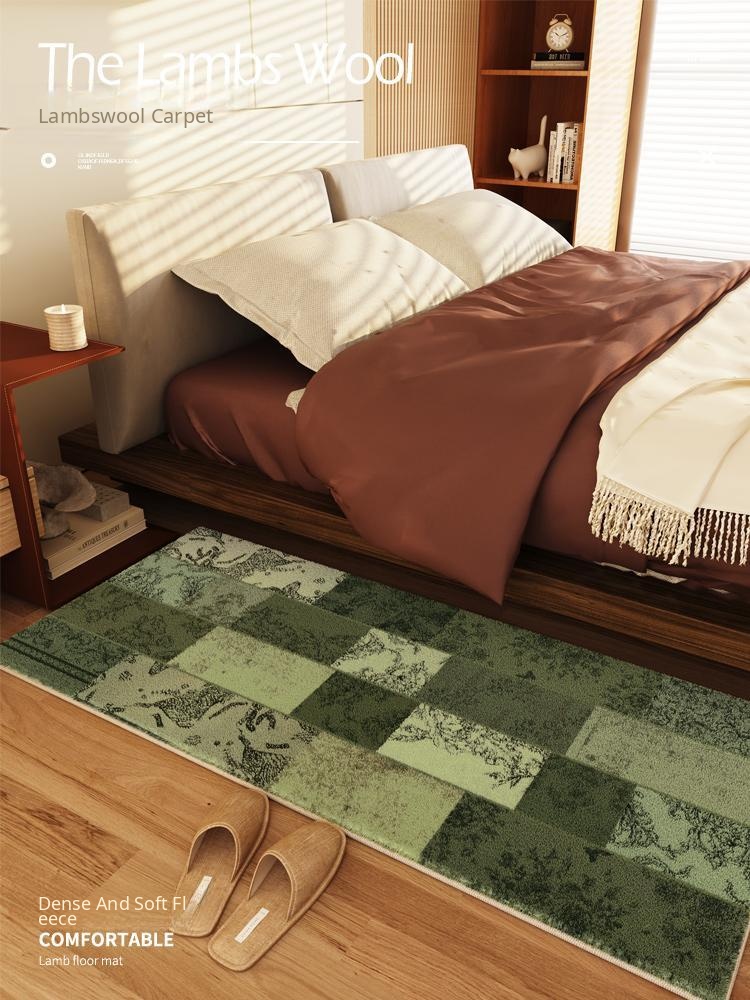 Vintage-Inspired Luxury Green Plush Area Rug for Bedroom and Living Room – Elegant French Style Sofa Mat, Perfect for Adding a Touch of Sophistication to Your Space!