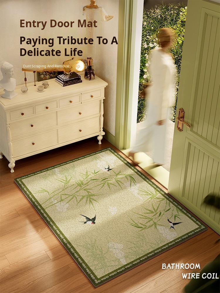 Song's Aesthetic Green Entrance Door Mat - No Wash, Easy Wipe, Chinese Style Entryway Carpet for Home, Perfect for Hallway and Doorway Use