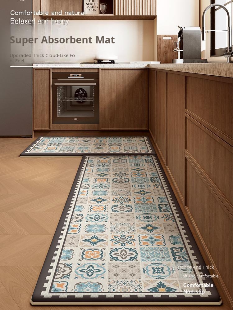 American-Style Floral Kitchen Rug - Extra Thick, Non-Slip, Oil-Resistant, Quick-Drying Carpet, Washable, Stain-Resistant Runner Mat for Ultimate Comfort and Style in Your Kitchen!