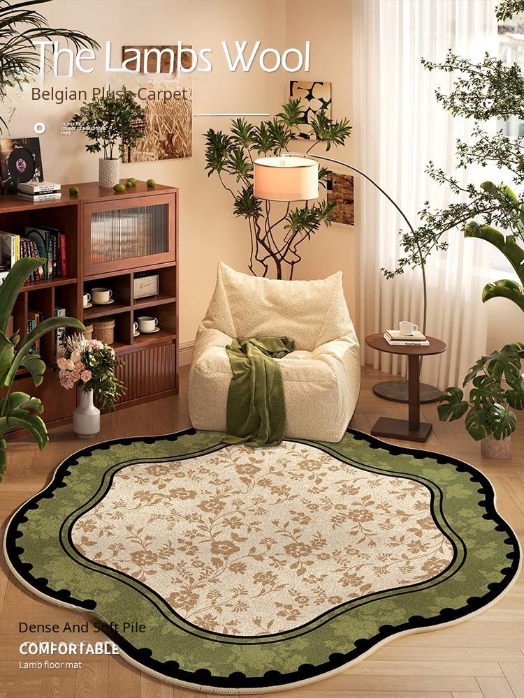 Premium American Vintage Round Carpet - Waterproof, Stain-Resistant, Elegant Design for Living Room, Easy to Clean, Ideal for Bedroom and Office Chair Mat.