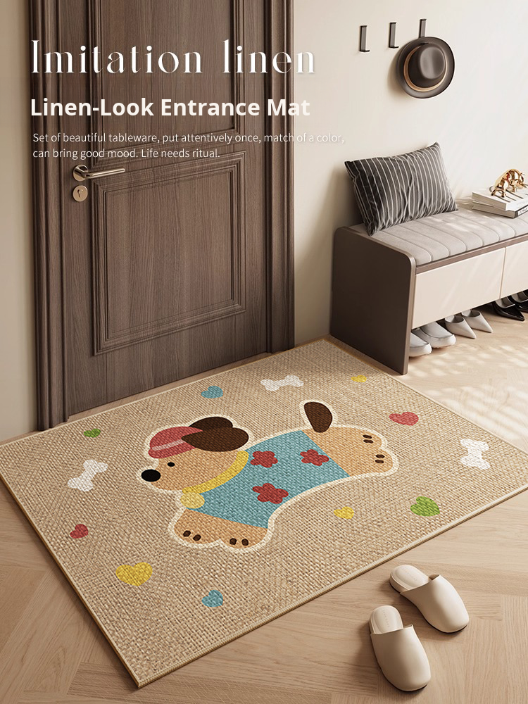 Cute Cartoon Dog Door Mat - Thick, Durable, and Washable Linen-Style Entrance Rug, Perfect for Home Use, Entryway, and Customizable Sizes