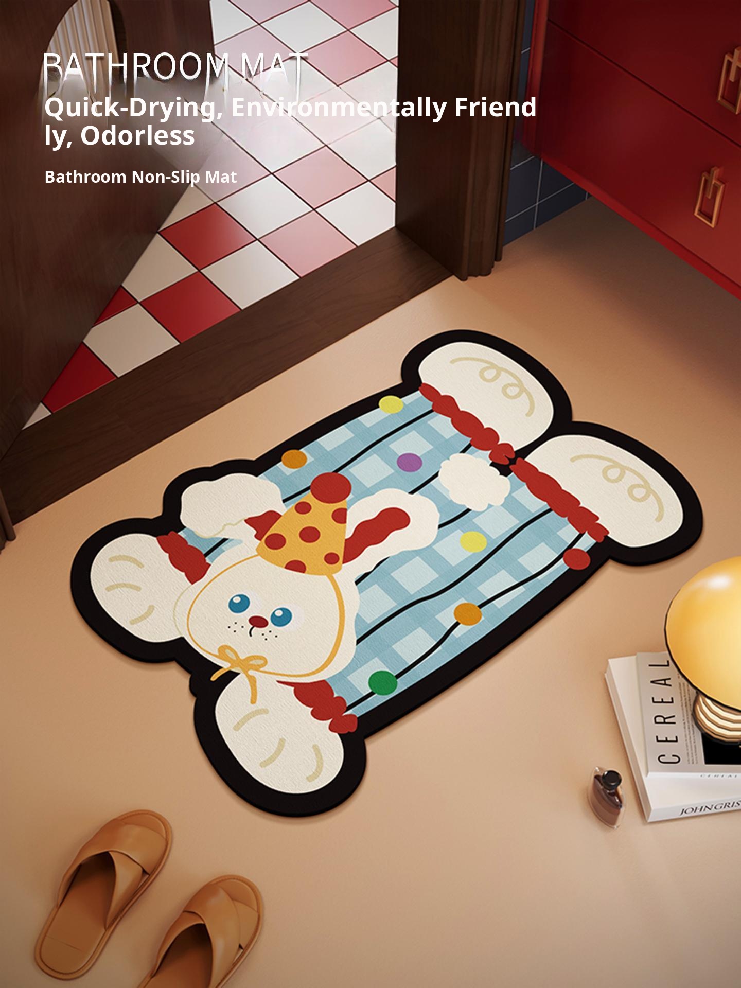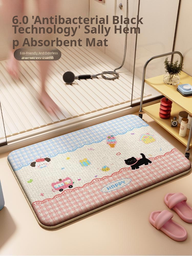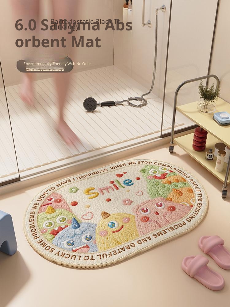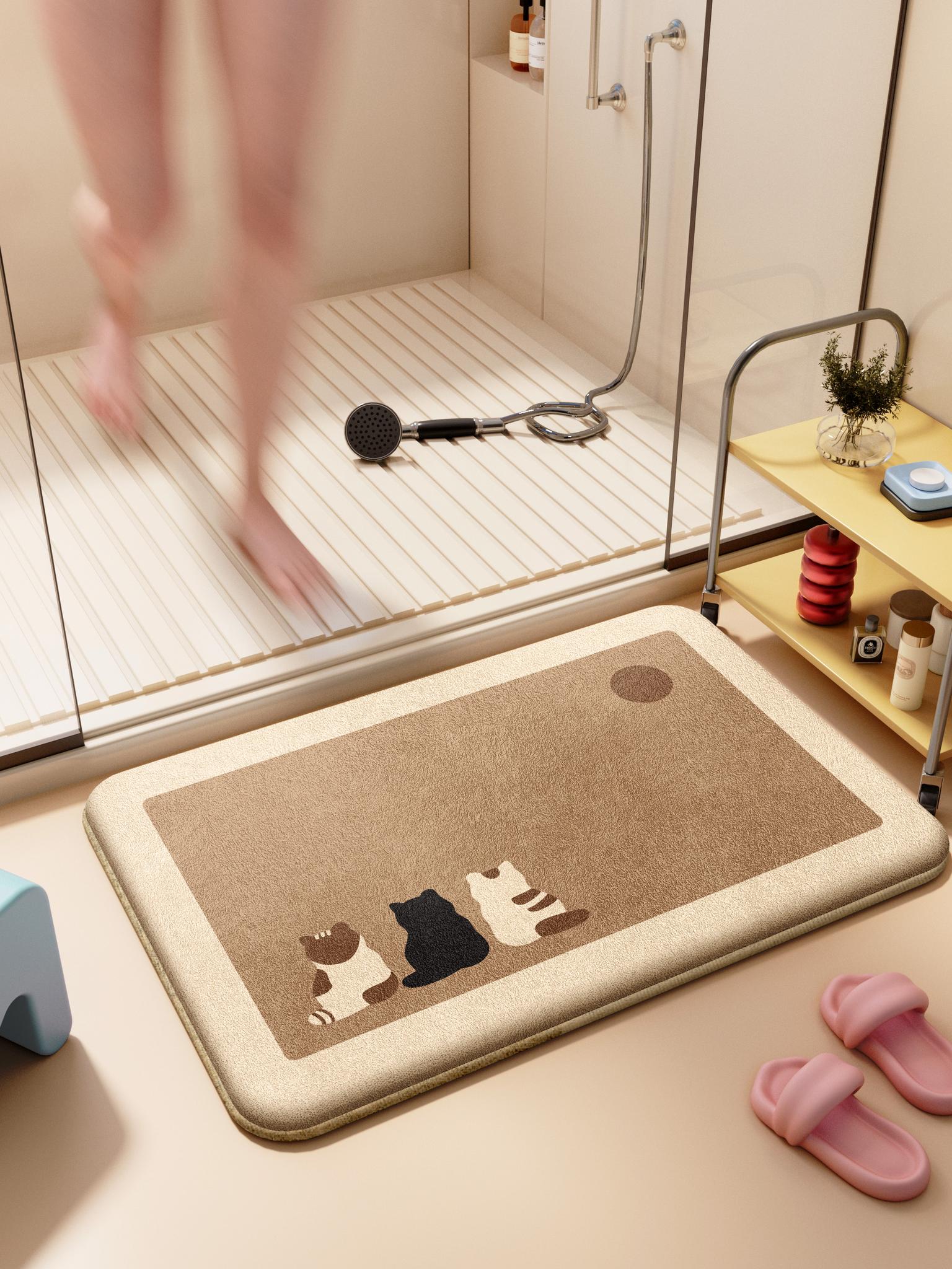 Unique Cartoon Bathroom Mat - Absorbent, Non-Slip, Quick-Dry Diatomaceous Earth Rug for Home Use, Perfect for Toilet Entrance