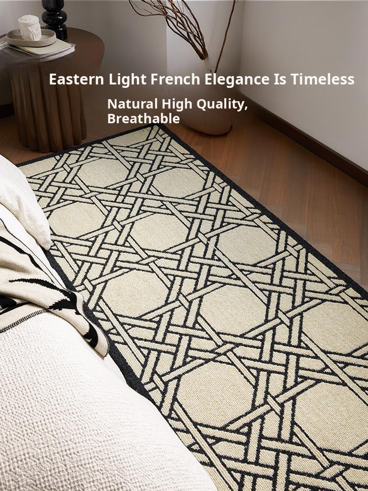 Imported Wool Bedroom Bedside Rug - American Vintage Style Bed End Throw for Master Bedroom, Light French-Inspired Living Room and Study Sofa Carpet