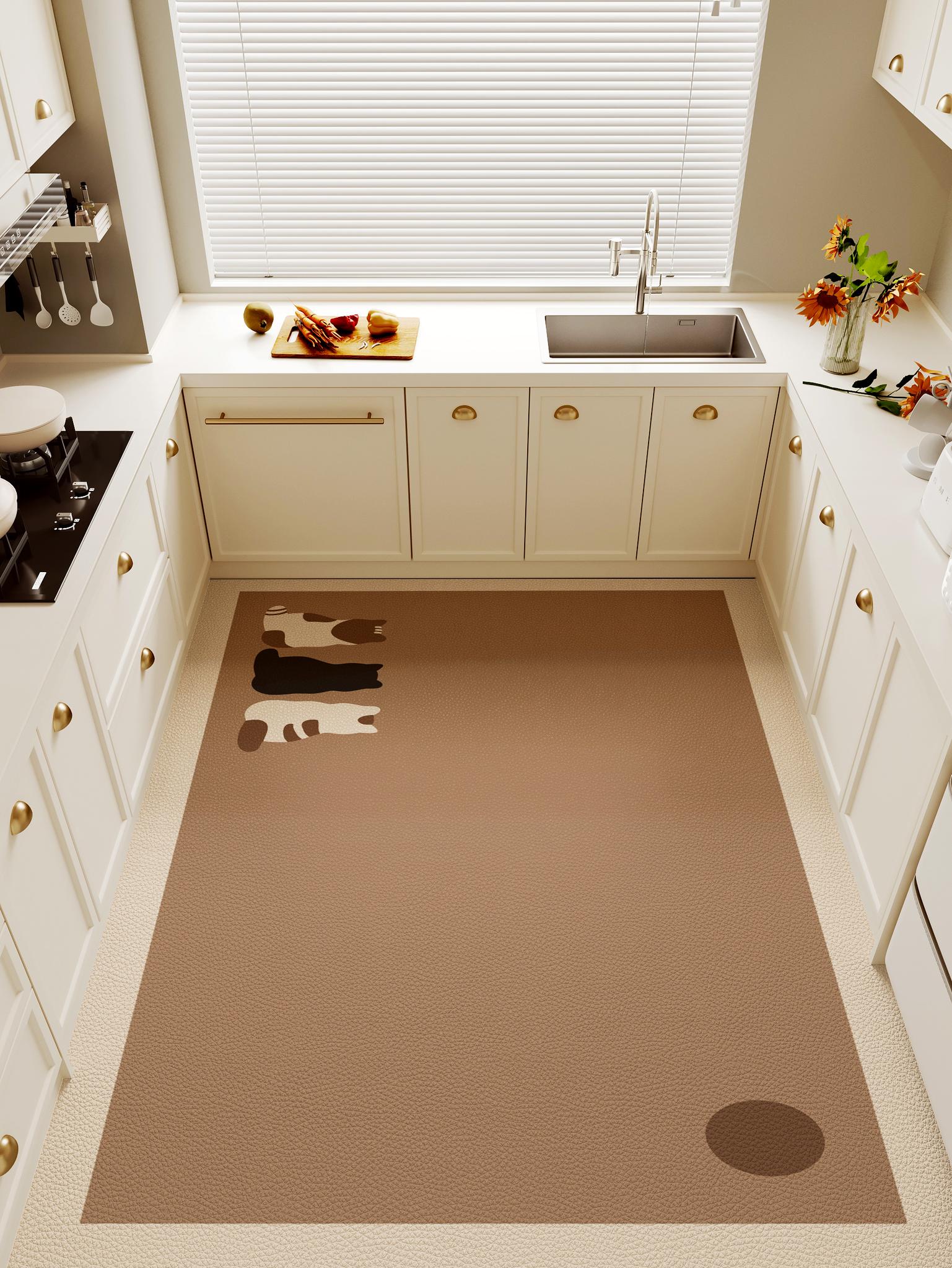 Waterproof Non-Slip PVC Kitchen Floor Mat - Large, Easy-Clean Leather Design, Customizable Size for Full Coverage - Perfect for a Safe and Stylish Cooking Space