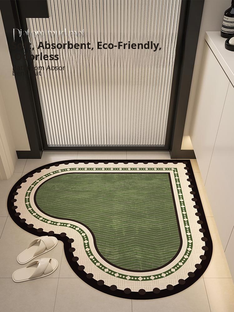 Heart-Shaped Bathroom Mat - Quick-Dry, Absorbent, Non-Slip Corner Rug for Restrooms - Stylish All-in-One Entrance Carpet for Your Home