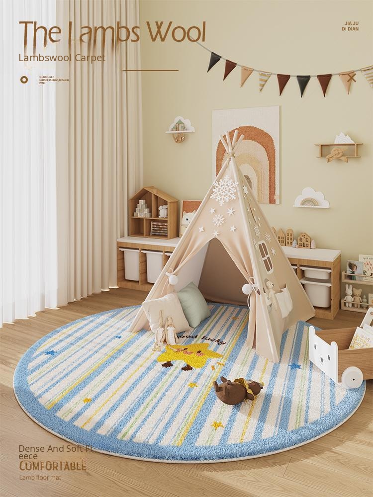 Children's Round Cartoon Rug - Washable Non-Slip Starry Plush Mat for Playroom or Balcony Tent, Soft Floor Cushion for Safety and Comfort in the Bedroom