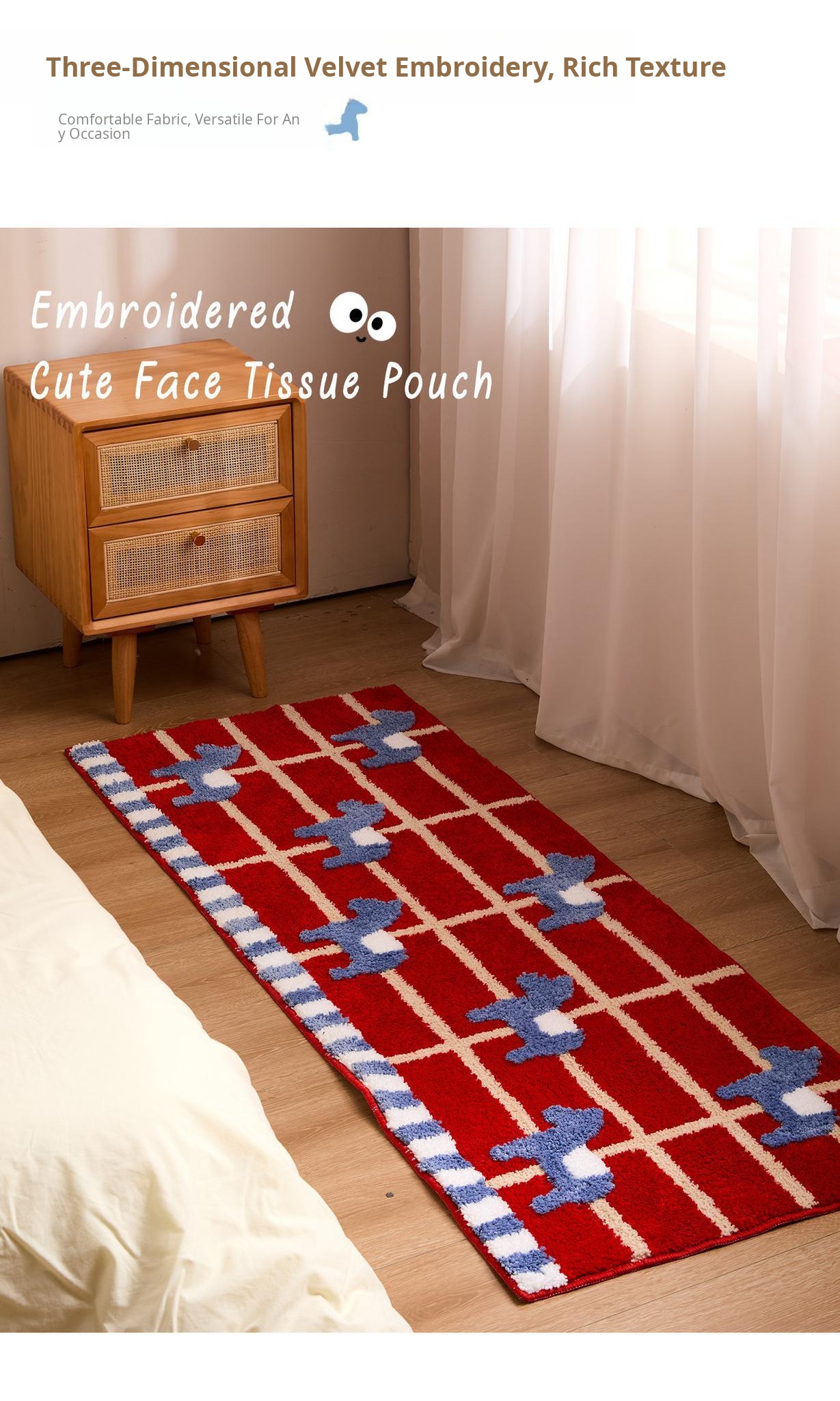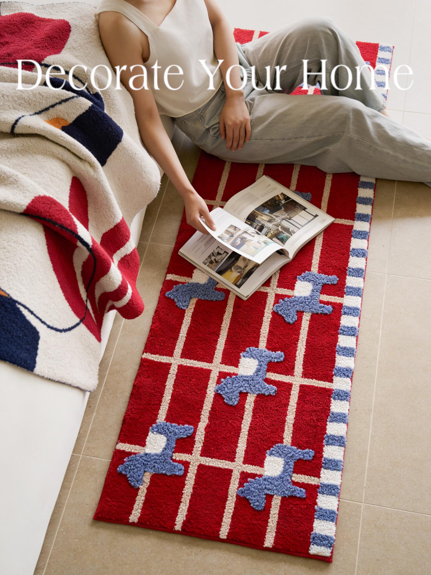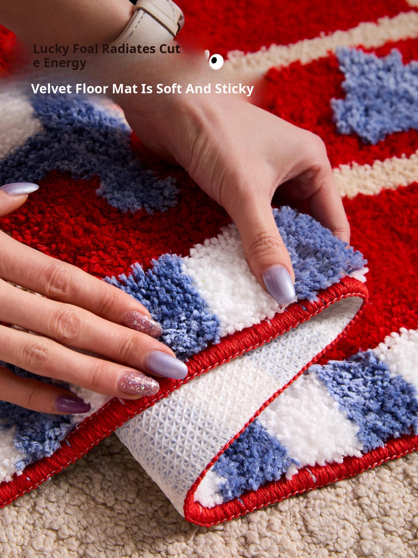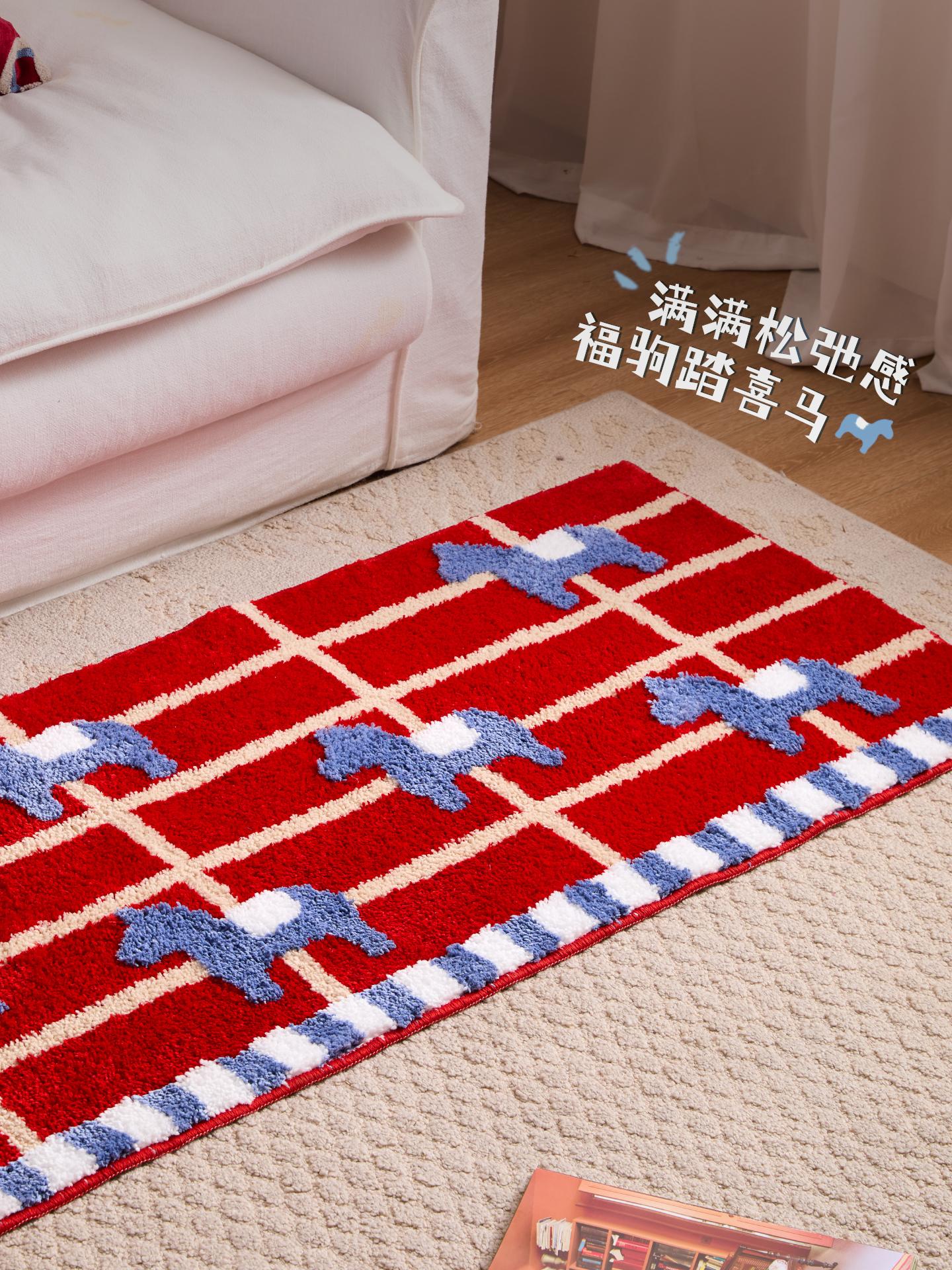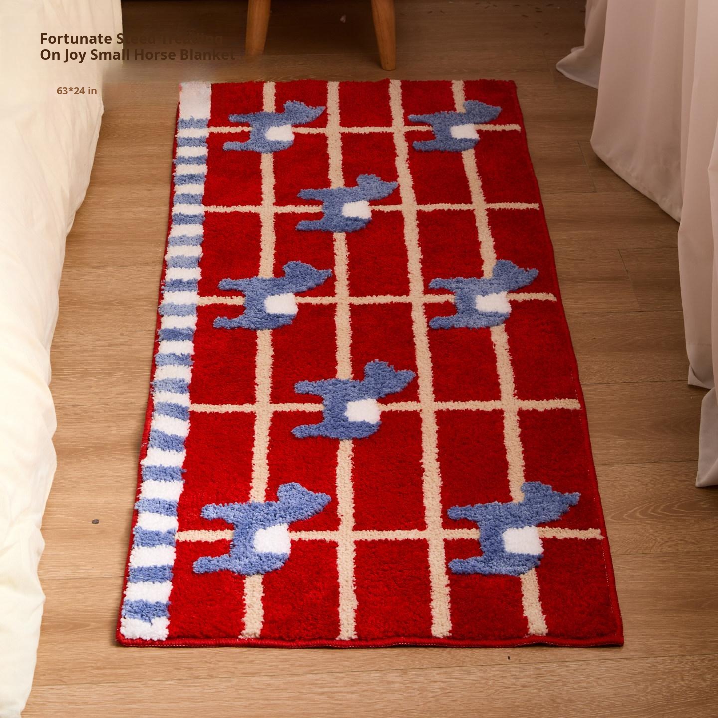 2026 New Year Red Embroidered Welcome Mat - Cartoon Design Non-Slip Dustproof Door Mat for Entryway, Perfect for the Year of the Horse!