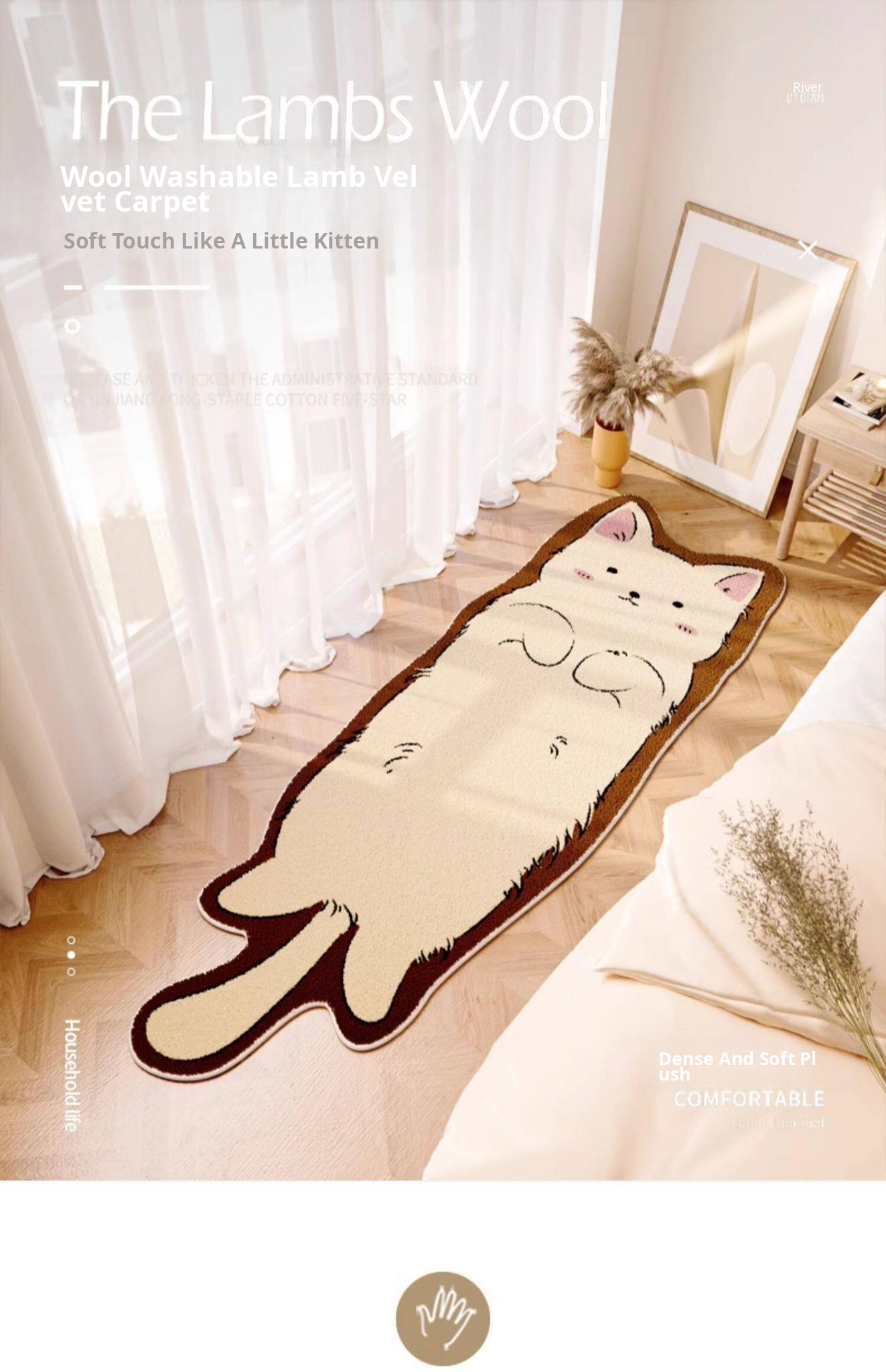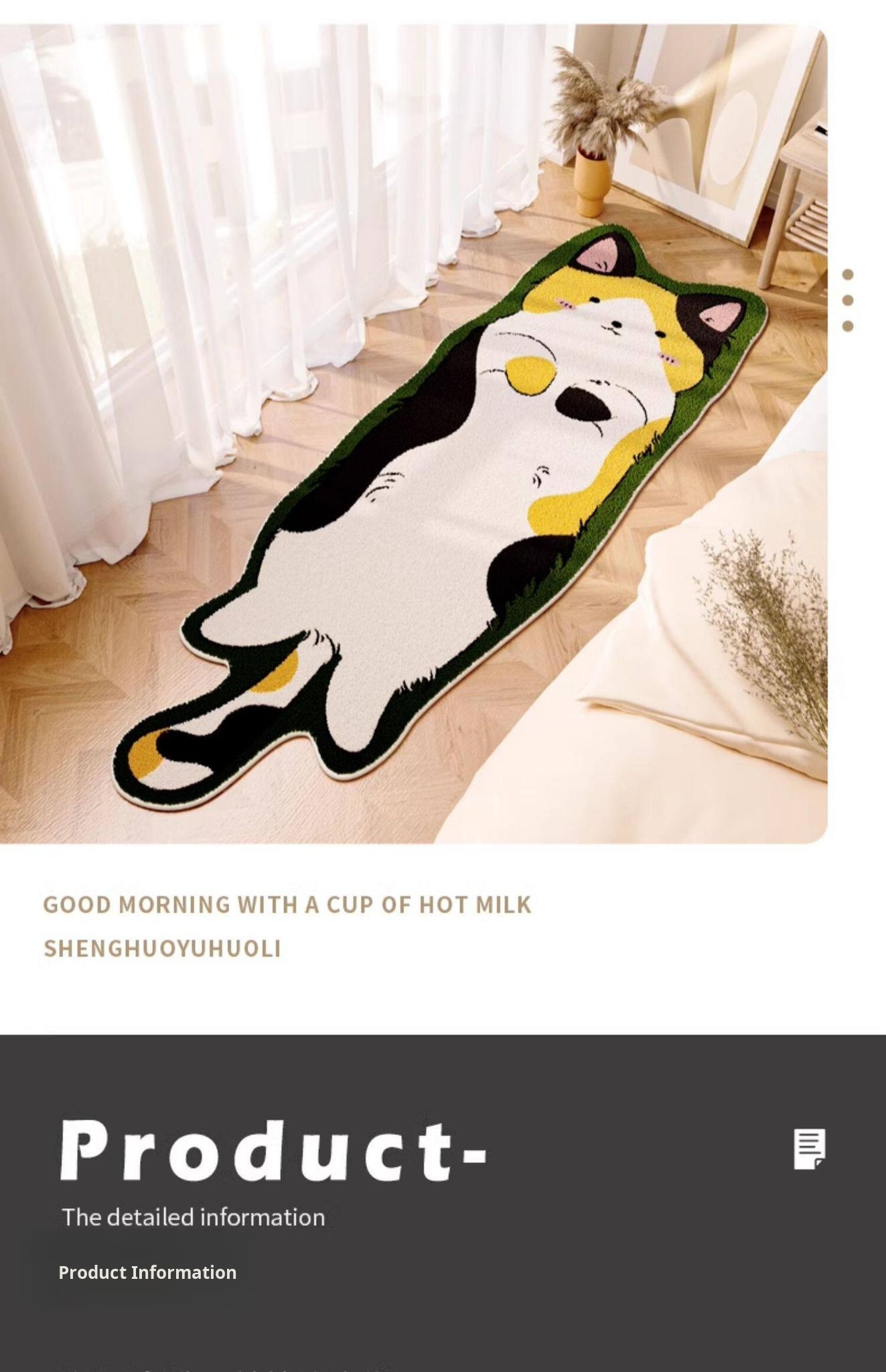 Cute Cartoon Cat Shaped Plush Area Rug - Thick Non-Slip Bedroom Carpet for Kids, Cozy Sofa Throw Blanket, Perfect for Living Room and Bedside Use