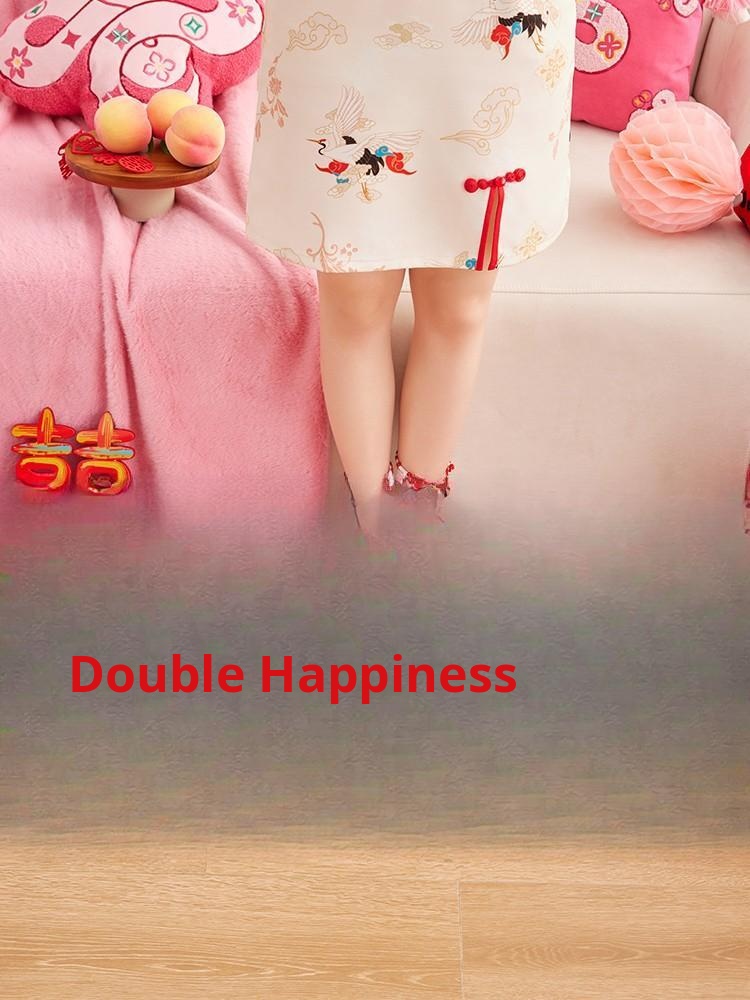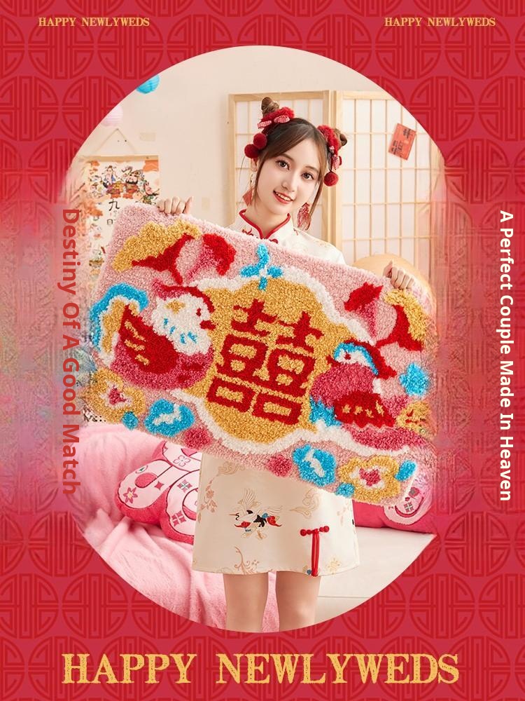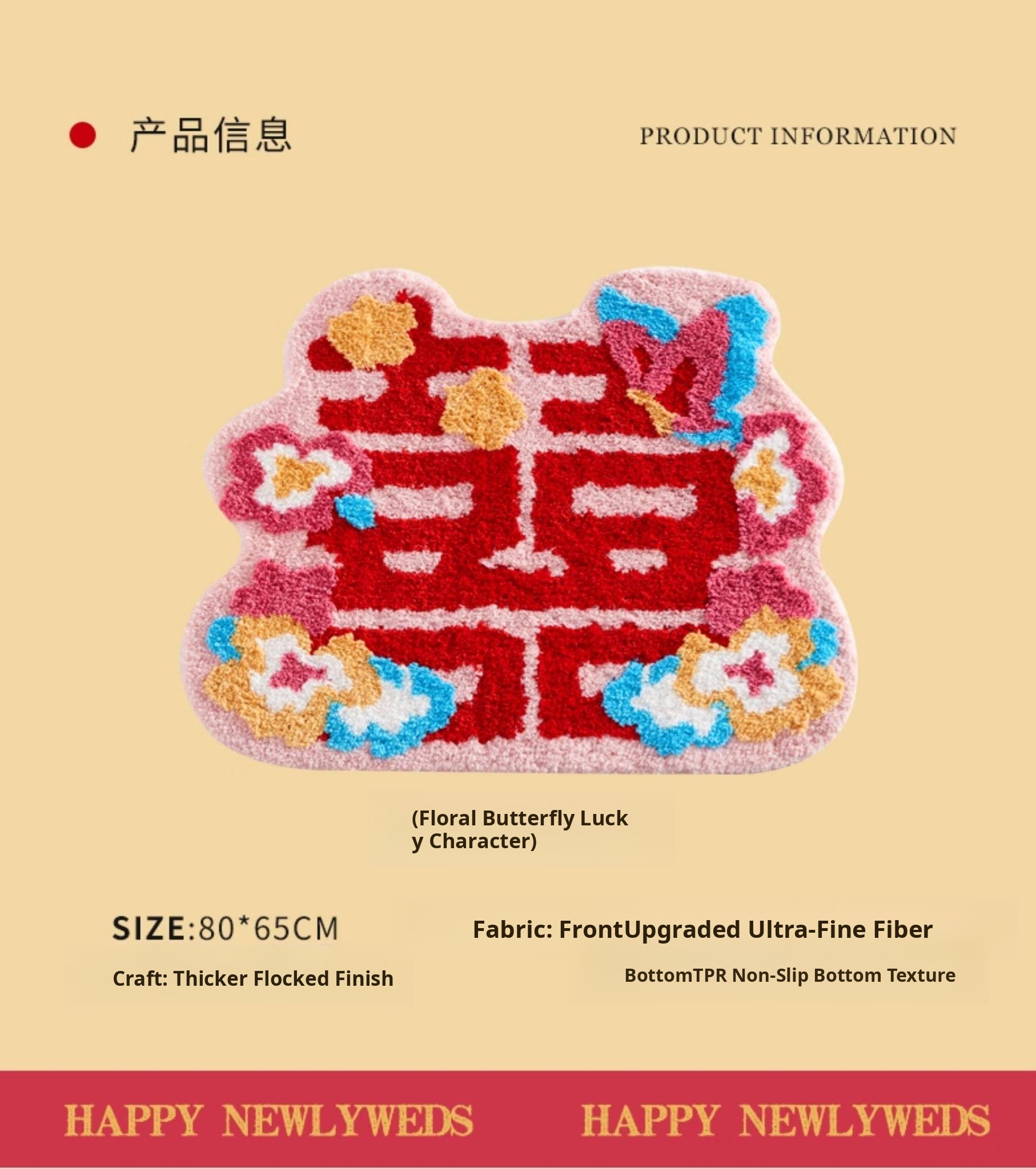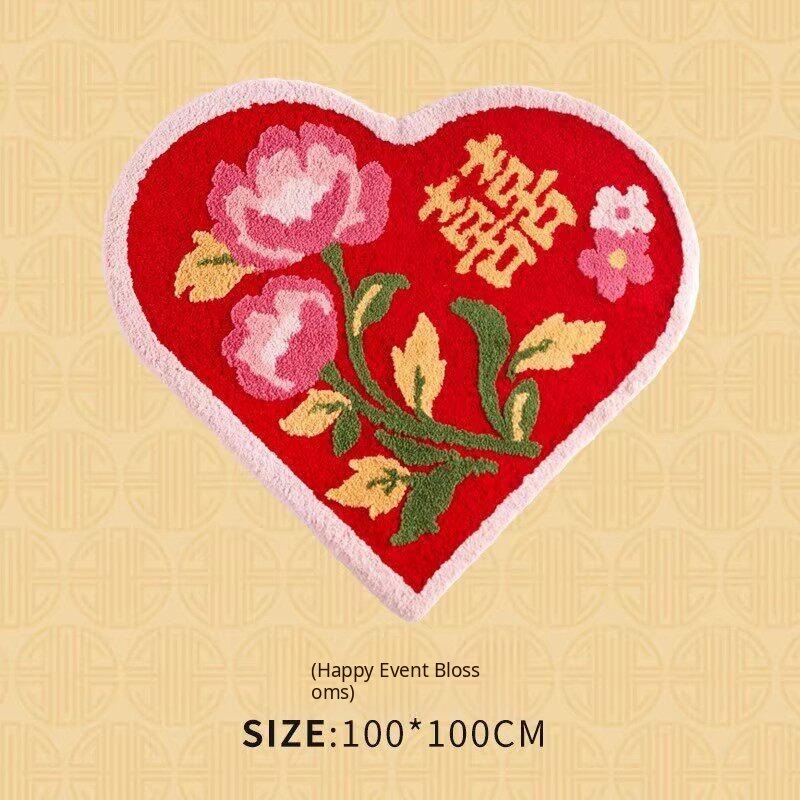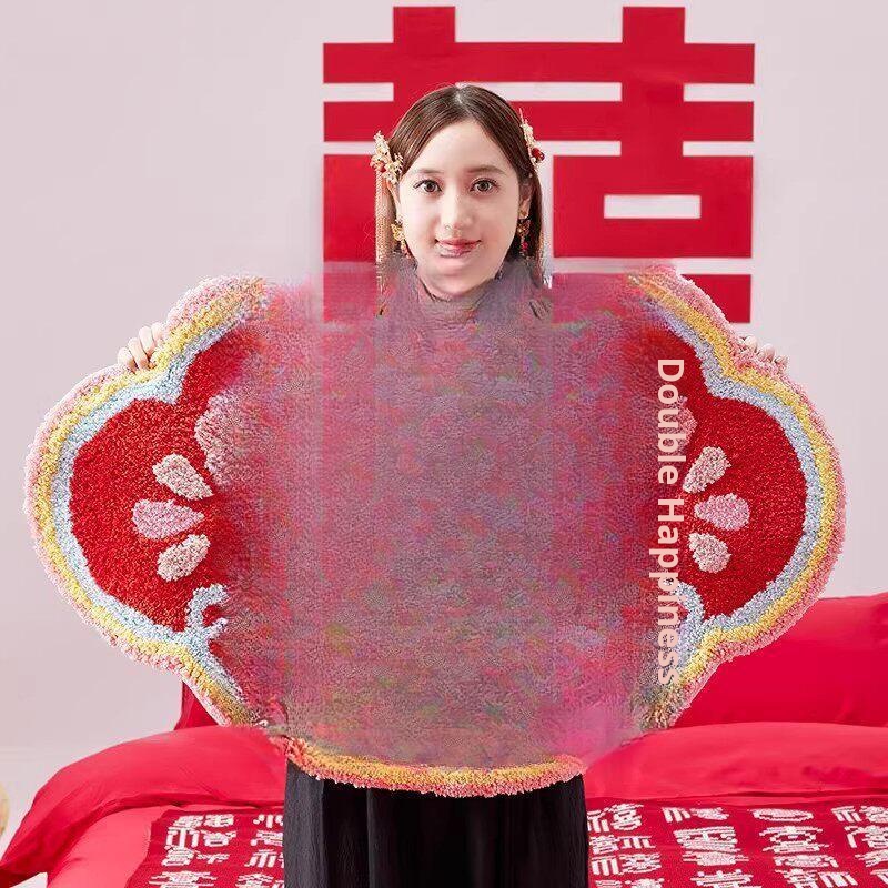 Red Double Happiness Wedding Doormat - Festive Decorative Mat for Bedroom and Marriage Room, Absorbent Non-Slip Velvet Carpet for Bedside