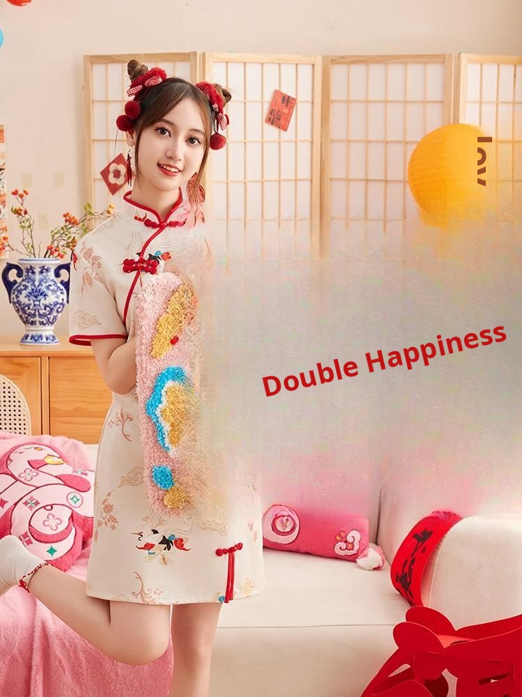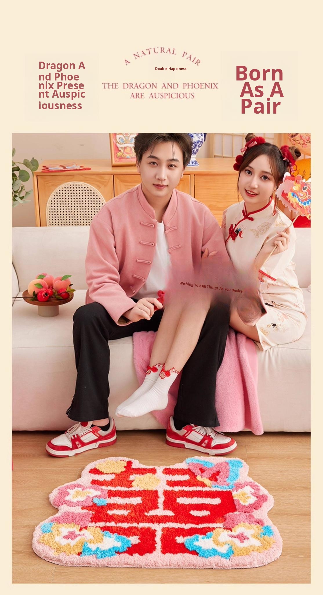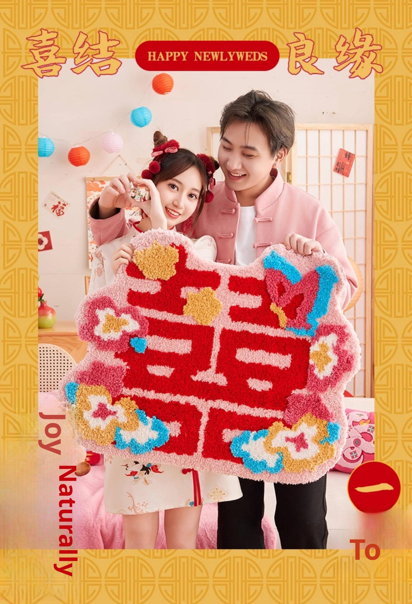 Festive Double Happiness Flocked Rug - Auspicious Ruyi Shape [24.41in*39.37in]