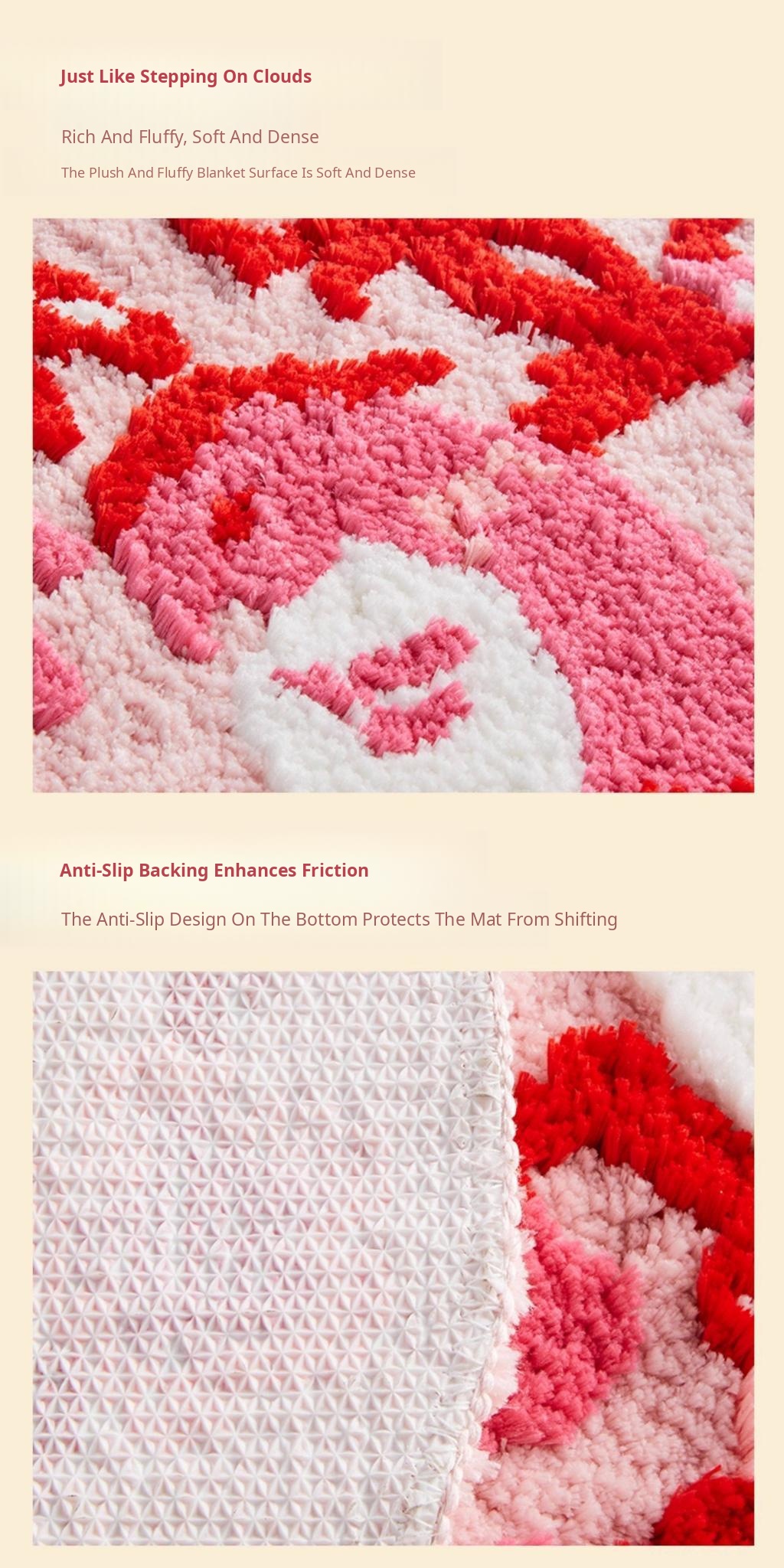 Heart-To-Heart Lock Flocking Carpet-Irregular Shape [19.69in*33.46in]