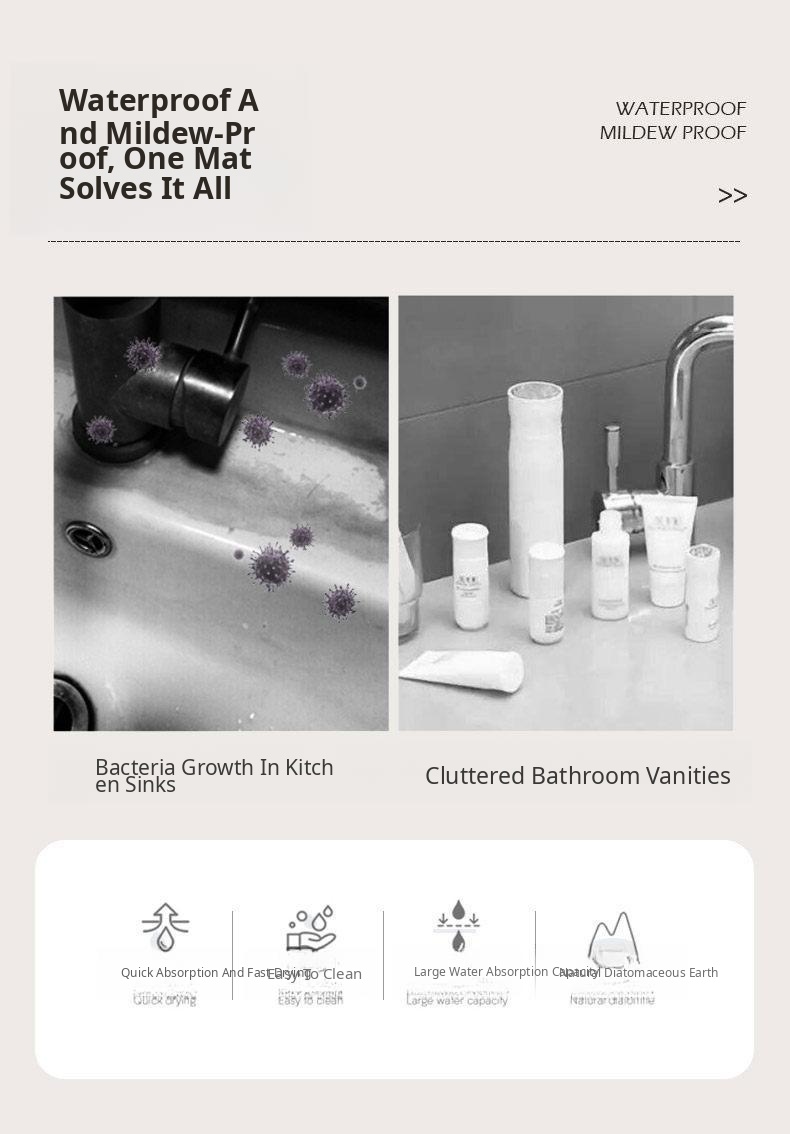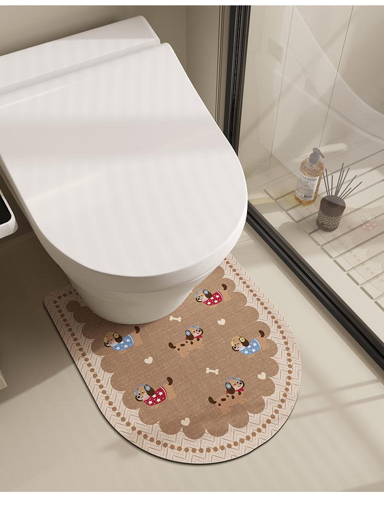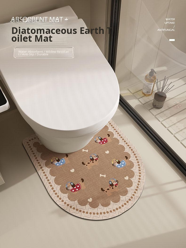 U-Shaped Toilet Edge Bath Mat - Absorbent Diatomaceous Earth Bathroom Rug, Easy to Clean and Stain-Resistant Floor Mat for Your Toilet