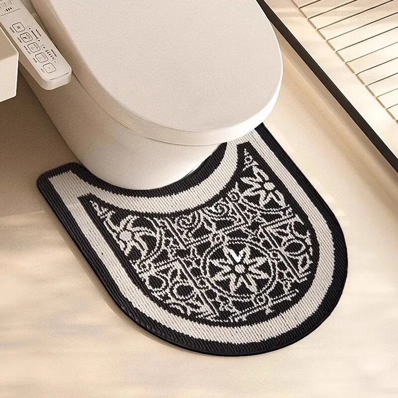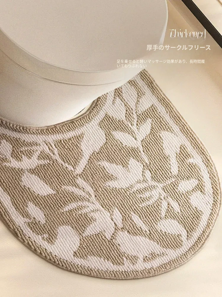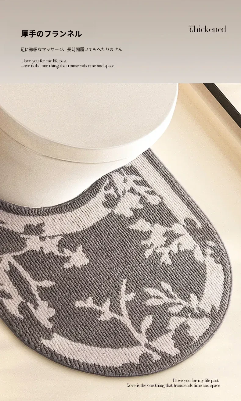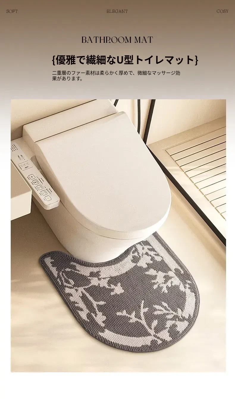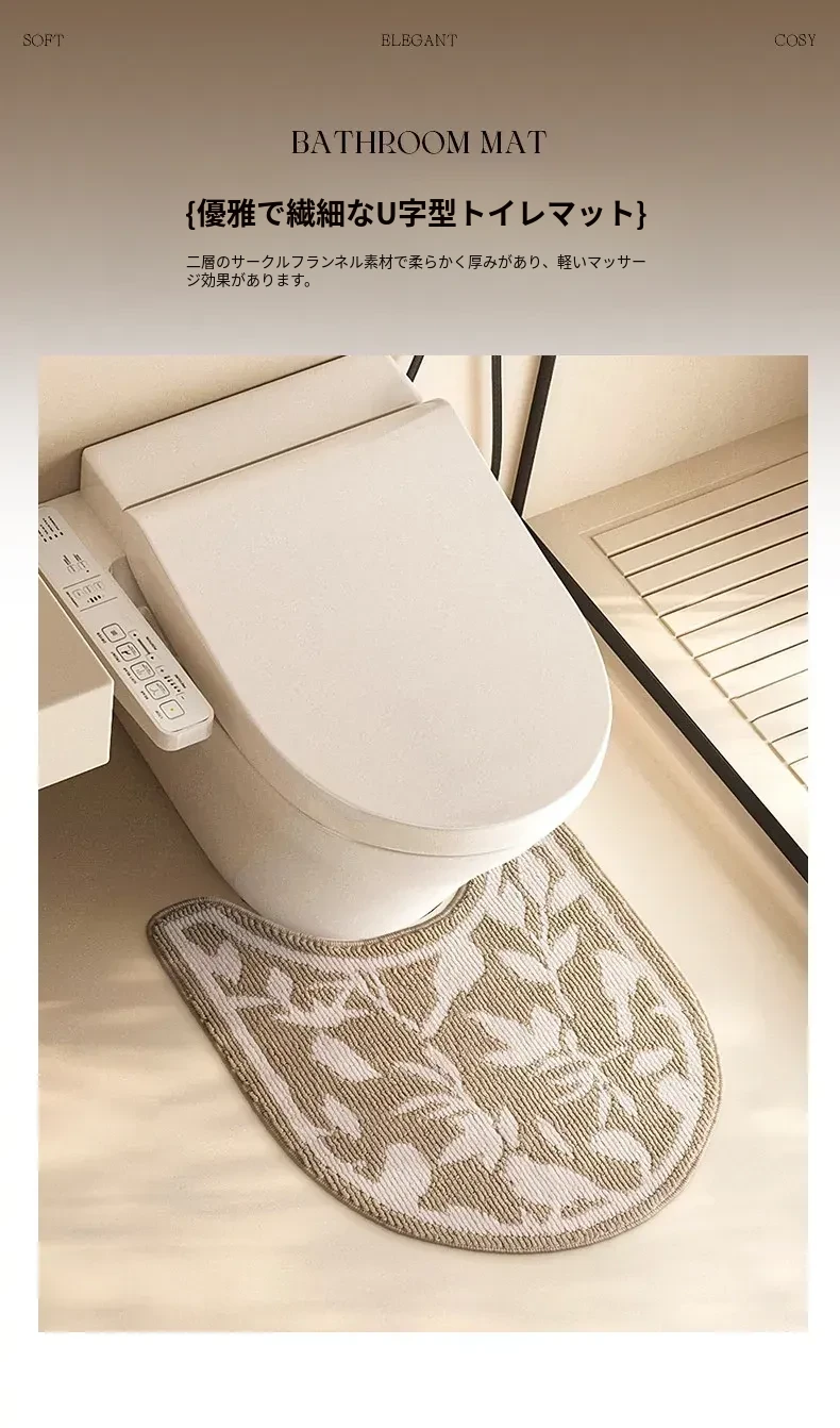 欧風バスルームトイレ用U型マット - 吸水速乾・滑り止め・汚れに強い!快適な足元を実現するトイレサークルフロアカーペット。おしゃれで機能的なトイレ環境を演出します!
