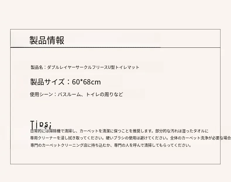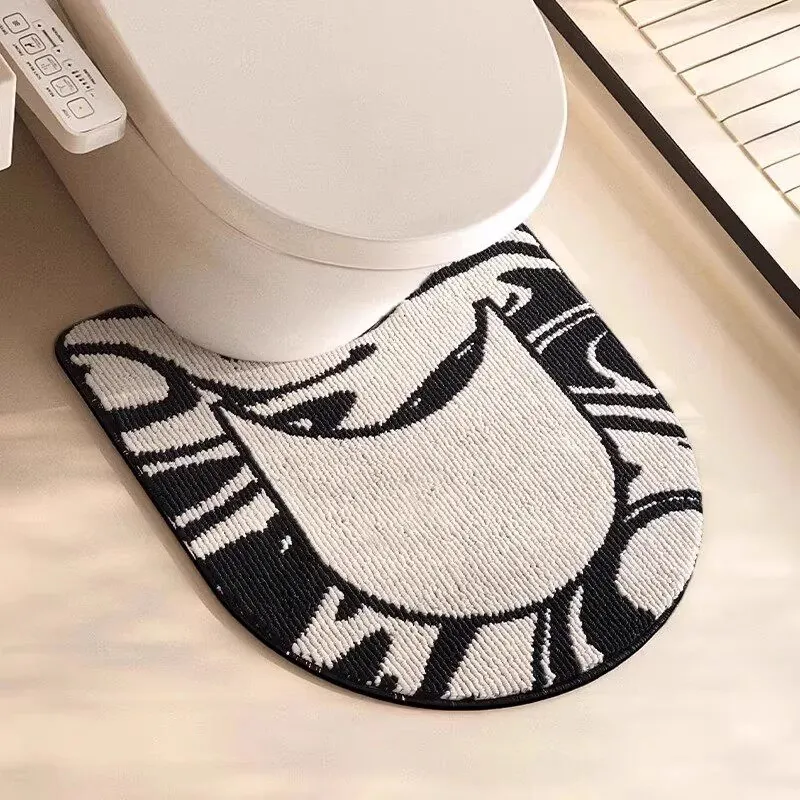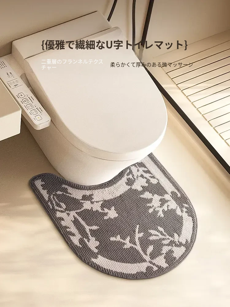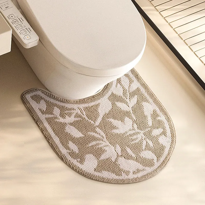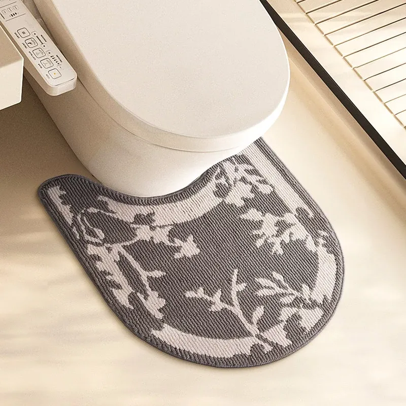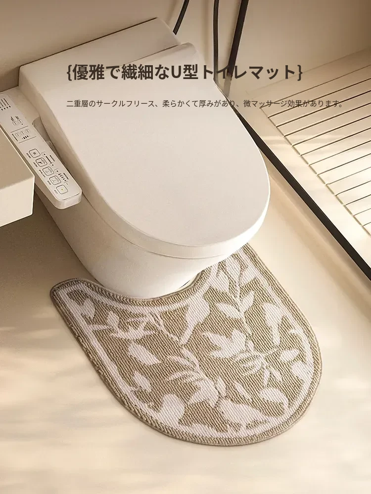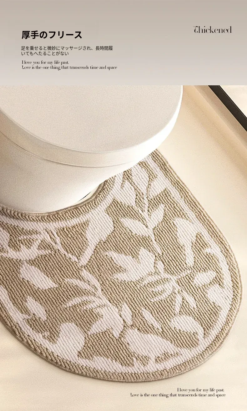 欧風バスルームトイレ用U型マット - 吸水速乾・滑り止め・汚れに強い!快適な足元を実現するトイレサークルフロアカーペット。おしゃれで機能的なトイレ環境を演出します!