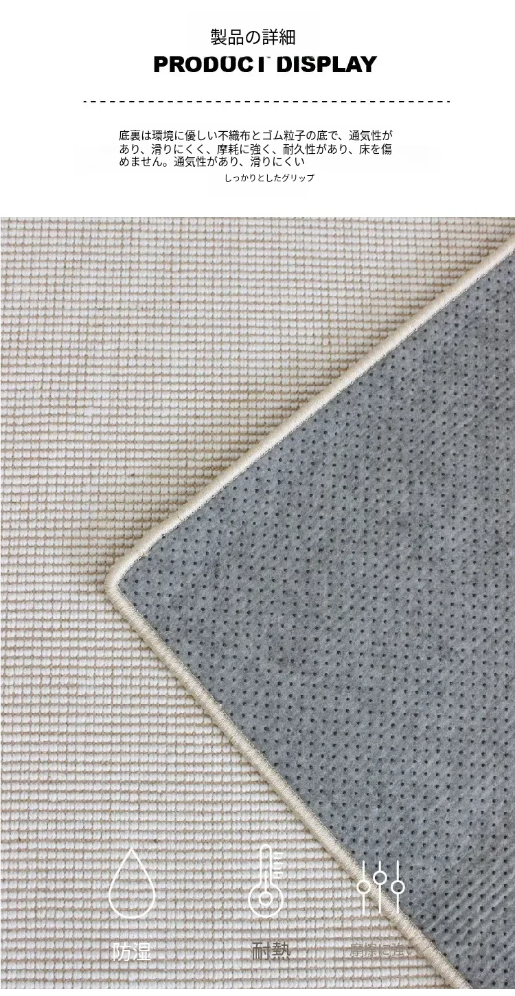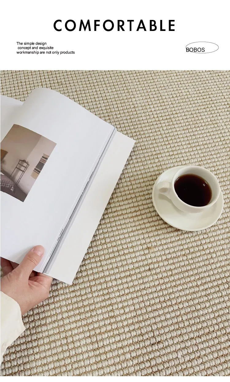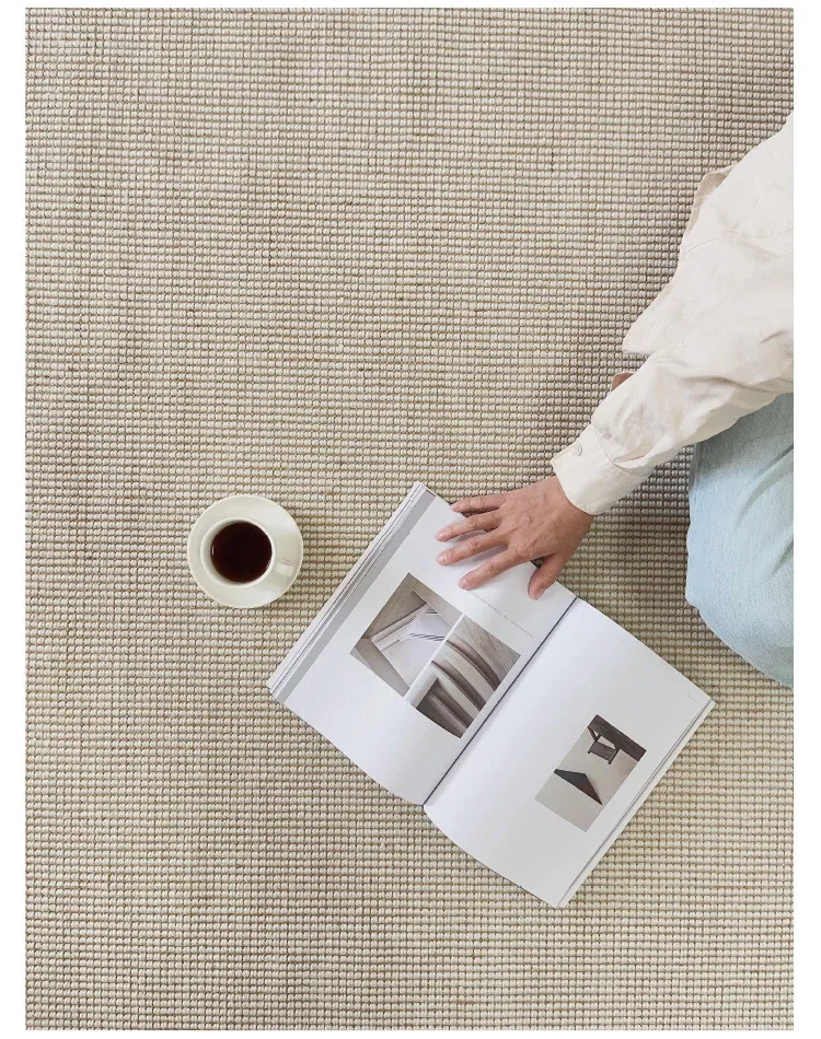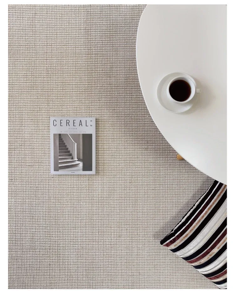 ラグジュアリーな雰囲気を演出するシンプルなデザインの天然ジュート&ウールラグ。和の美しさを感じる侘び寂びスタイル、北欧風の四季を通じてお使いいただける、リビングや寝室にぴったりの高級マットです。